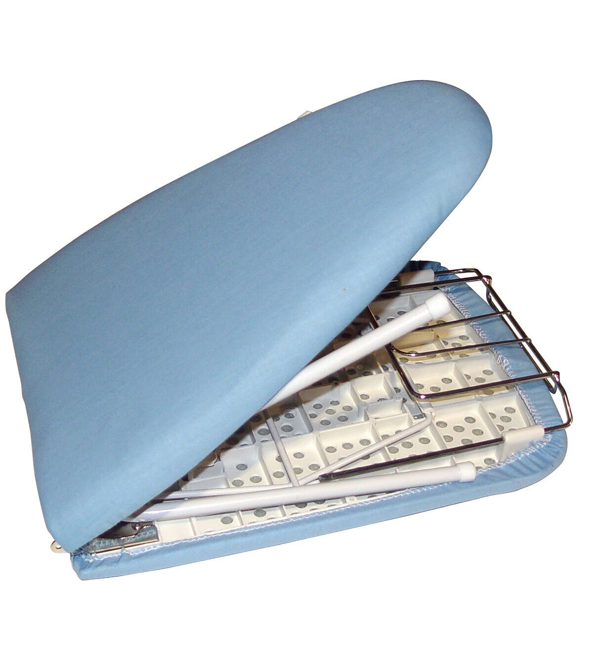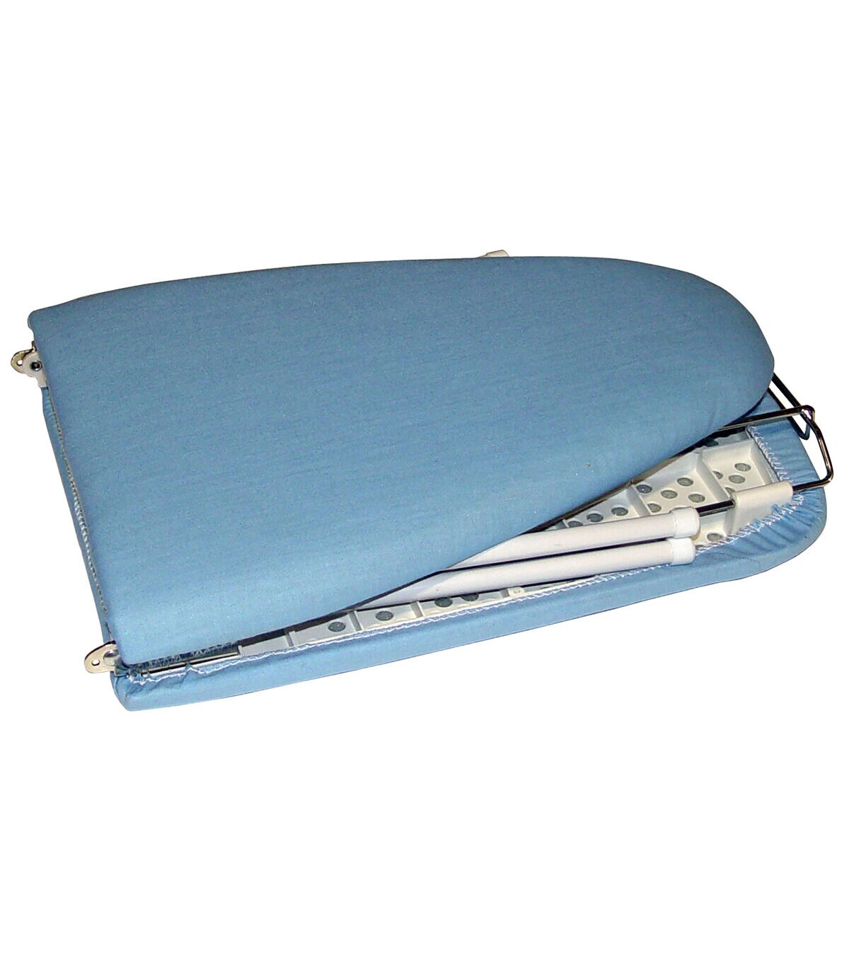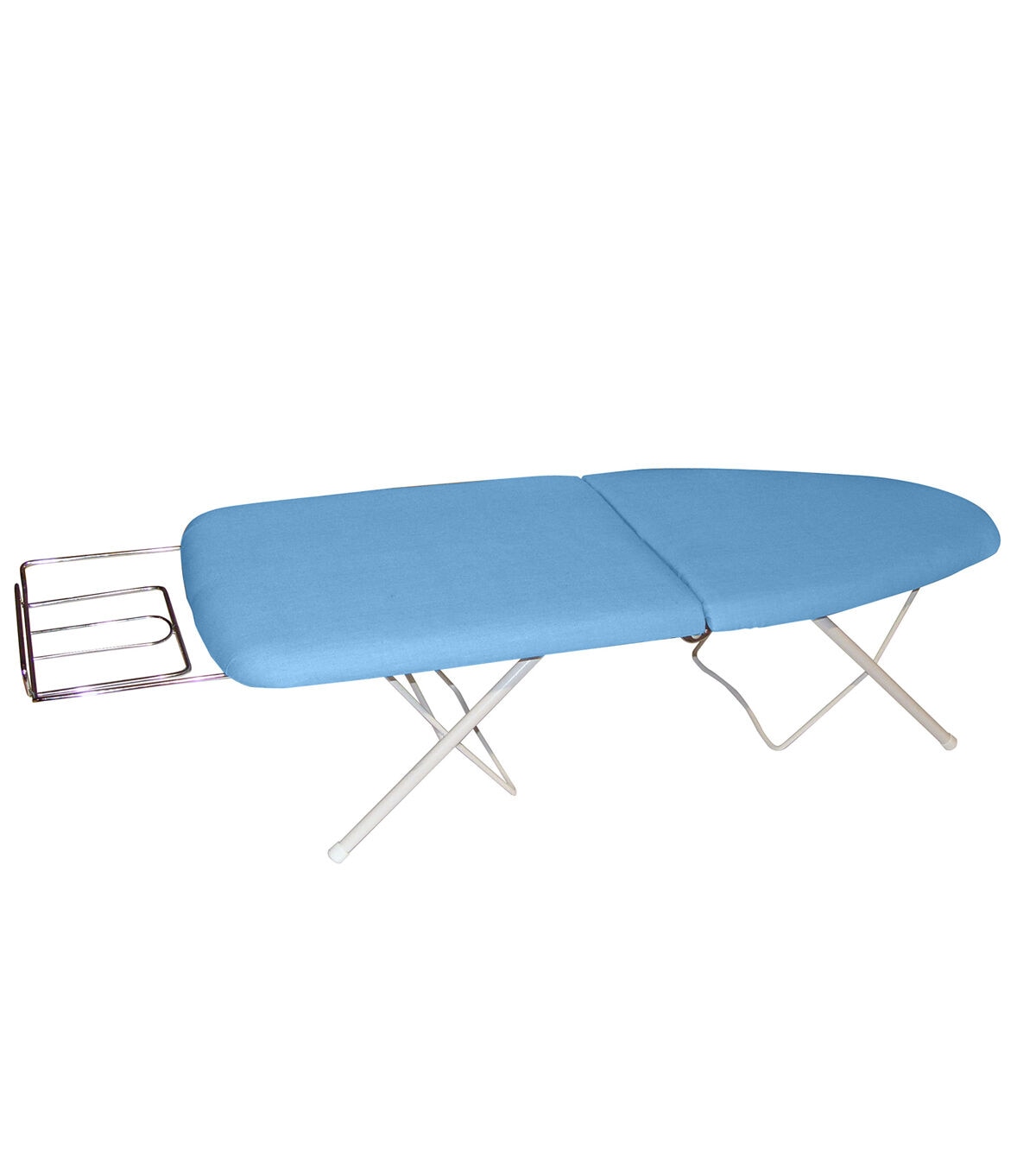 The Sullivans Go Board Portable Folding Ironing Board is great for tabletop ironing. You can fold this compact ironing board in half to allow easy storage or carrying when traveling. It comes with a 6 x 9-inch iron caddy and folding legs. This board is perfect for use in sewing classes, dorm rooms, RVs and other small areas.