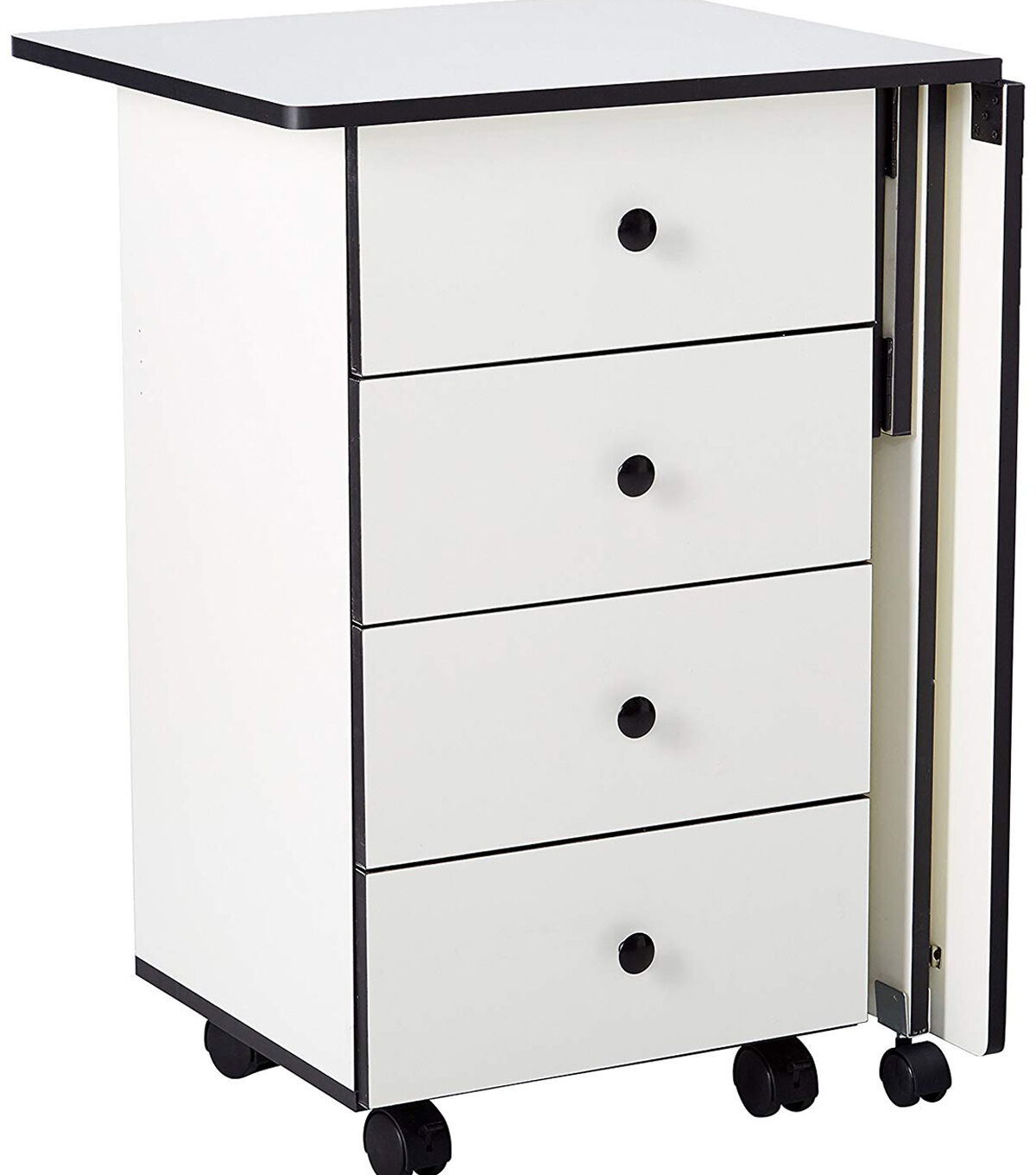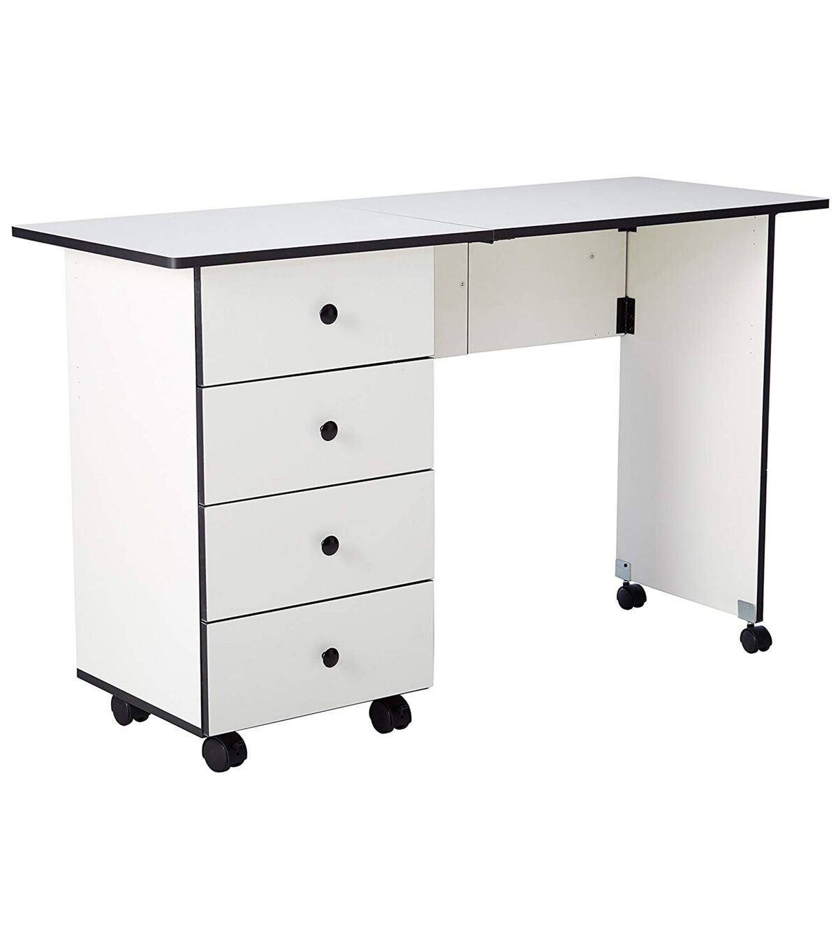 - Includes a sewing table features four drawers for supply storage and locking casters for easy mobility