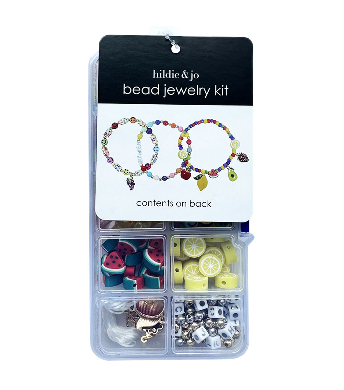 Create vibrant and exciting jewelry designs using the Summer Enamel Fruits Bead Kit by hildie & jo. This kit comprises alphabet beads, fruit-shaped beads, resin beads, charms and stretch cords. You can use these components to make bracelets, necklaces and anklets. It will also make a wonderful gift for a craft enthusiast you are close to.