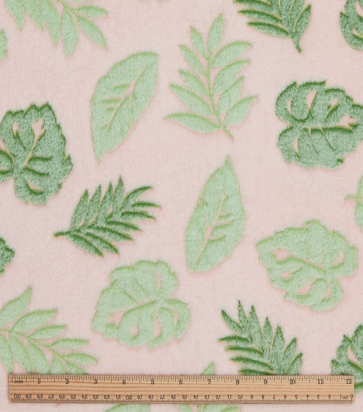 Summer Green Embossed Simple Tropical Leaves Sew Lush Fleece Fabric