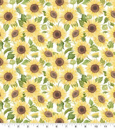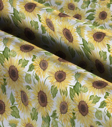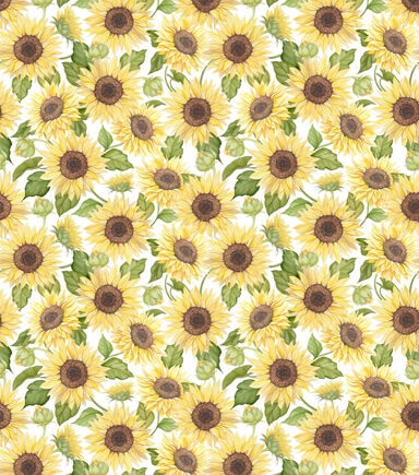 • Sunflower Garden On White Premium Cotton Fabric