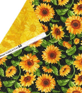 Sunflowers on Black Double Faced Quilted Cotton Fabric