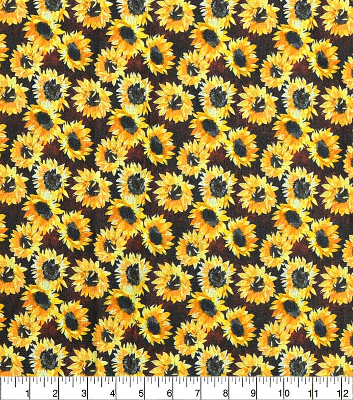 • Sunflowers on Maroon Cotton Fabric