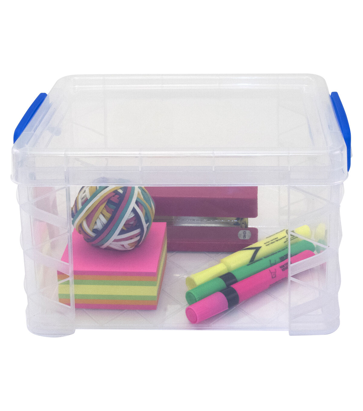 Don't sweat the small OR big stuff with Super Stacker. This space-saving storage system will bring organizational order to any space. Its stackable design is perfect for use with or without shelving, with a heavy-duty plastic construction that can accommodate large or heavy items. Easy snap-lock handles keep lid in place and contents secure for transport, and fun color variations make it easy to categorize and distinguish contents. Available in a variety of shapes and sizes.