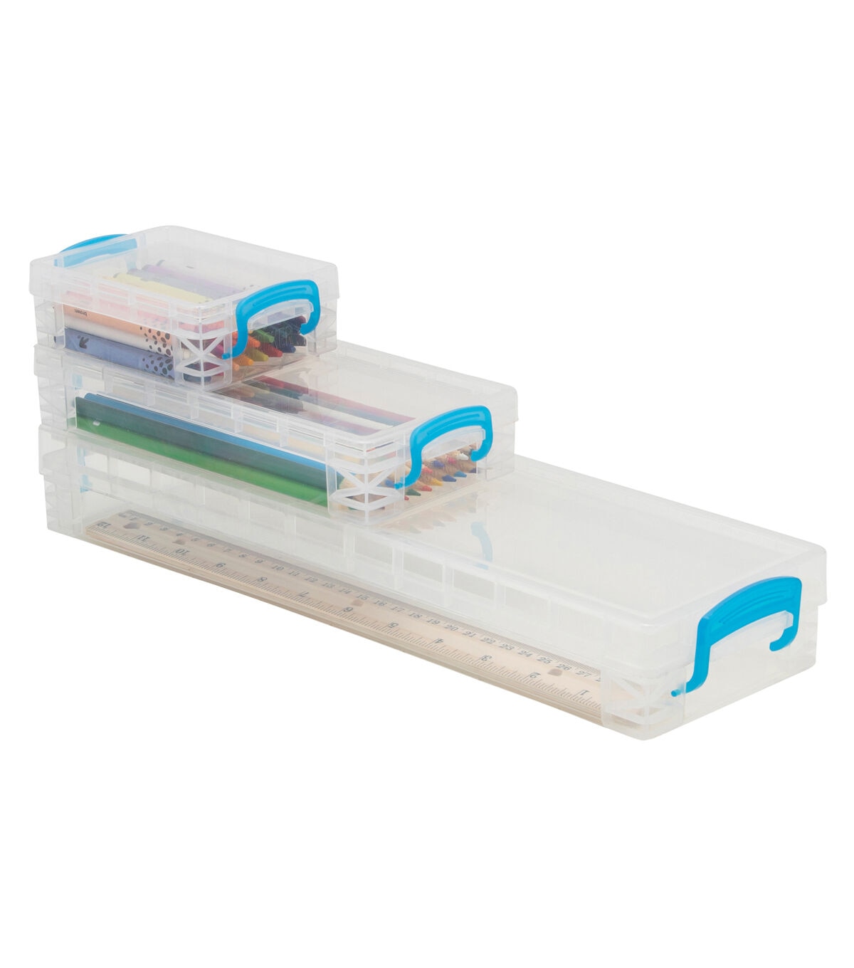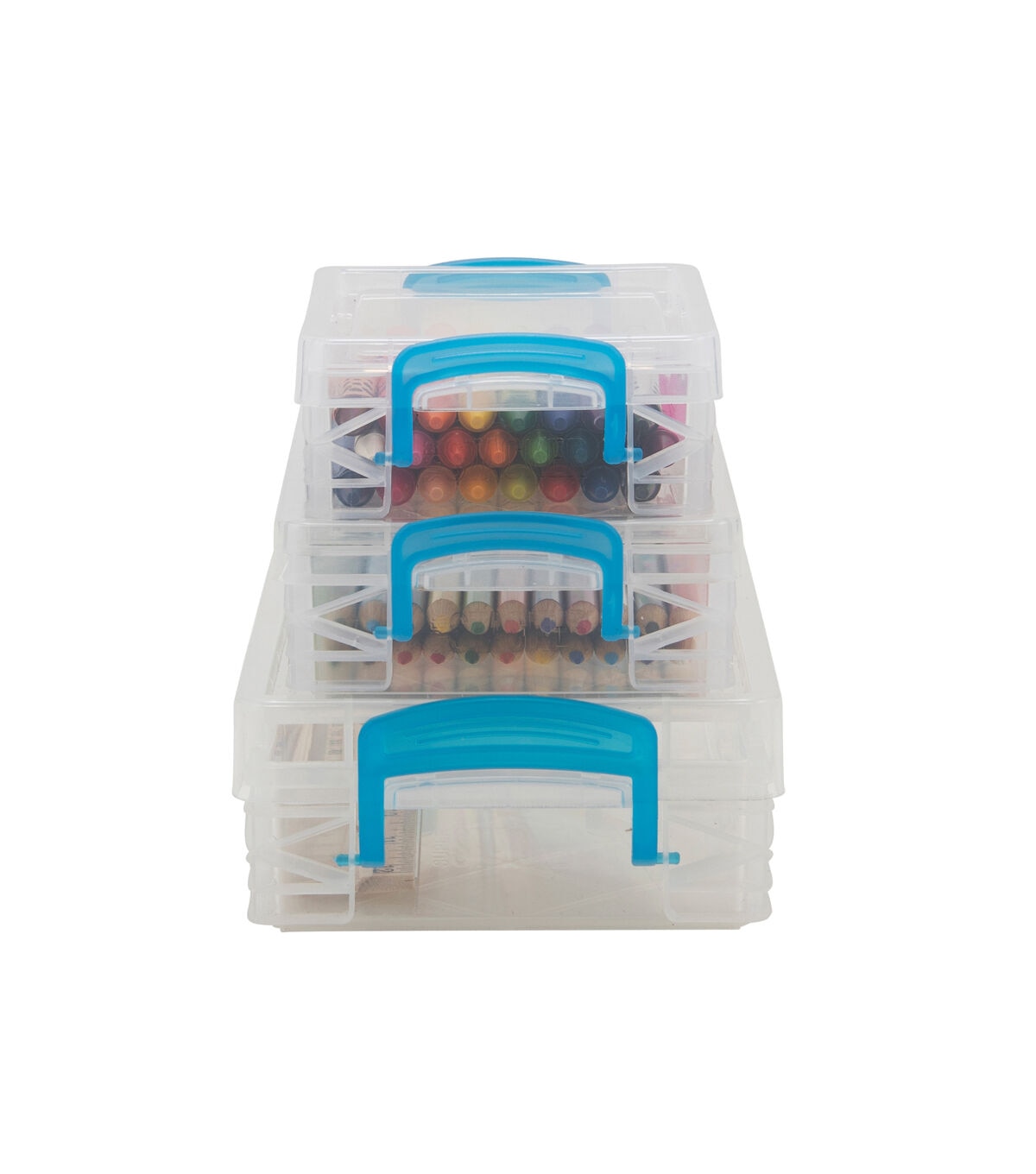 Don't sweat the small OR big stuff with Super Stacker. This space-saving storage system will bring organizational order to any space. Its stackable design is perfect for use with or without shelving, with a heavy-duty plastic construction that can accommodate large or heavy items. Easy snap-lock handles keep lid in place and contents secure for transport, and fun color variations make it easy to categorize and distinguish contents. Available in a variety of shapes and sizes.