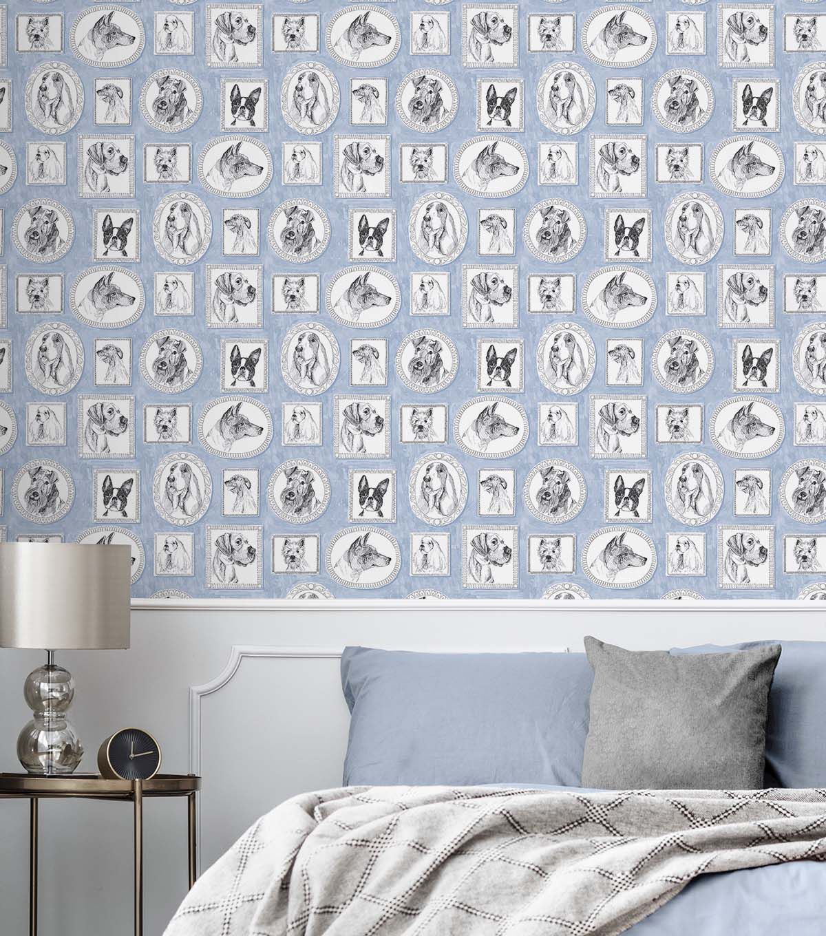 Simple and charming are these classic Victorian framed portraits of our canine family and friends by Surface Style. Pup Portraits feature multiple dog breeds, enriched by a neutral-colored background. This fun, charming wallpaper pattern is sure to capture your heart. Ideal for renters and homeowners, short or long-term use. DIY Friendly, printed on durable, vinyl our self-adhesive wallpaper is easy to apply, repositionable and 100% removable without any sticky residue left behind. Each roll is 20.5 in. wide by 18 ft. long, covers 30.75 sq. ft. Made in the USA.