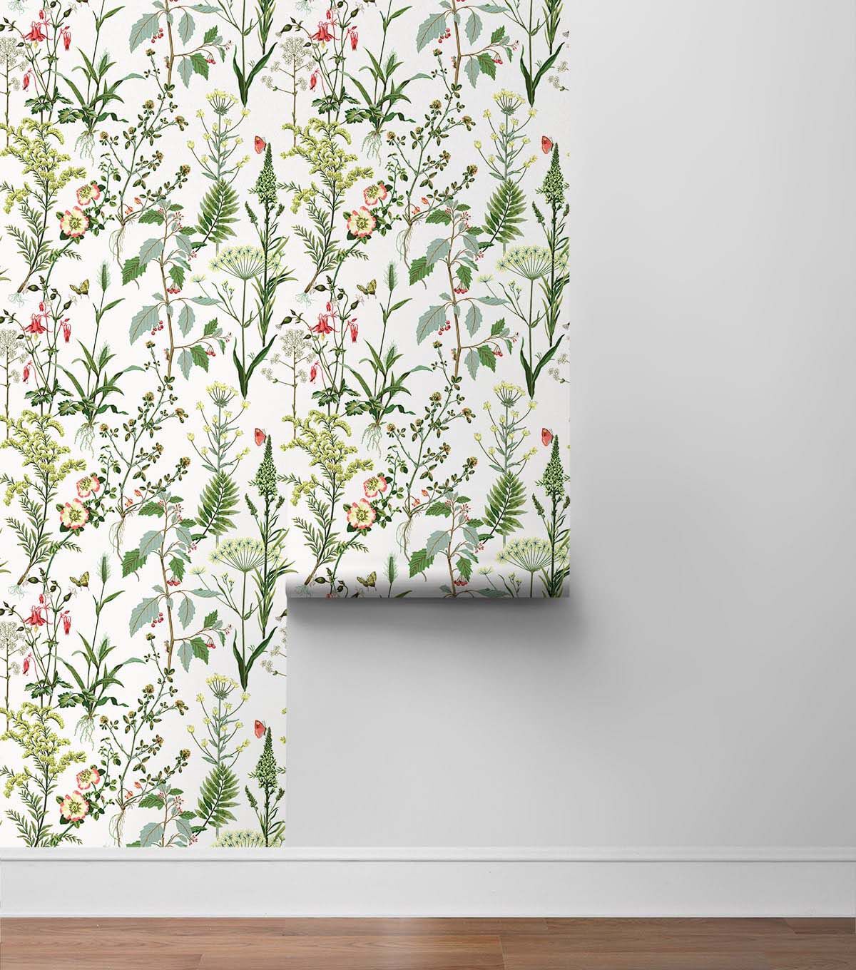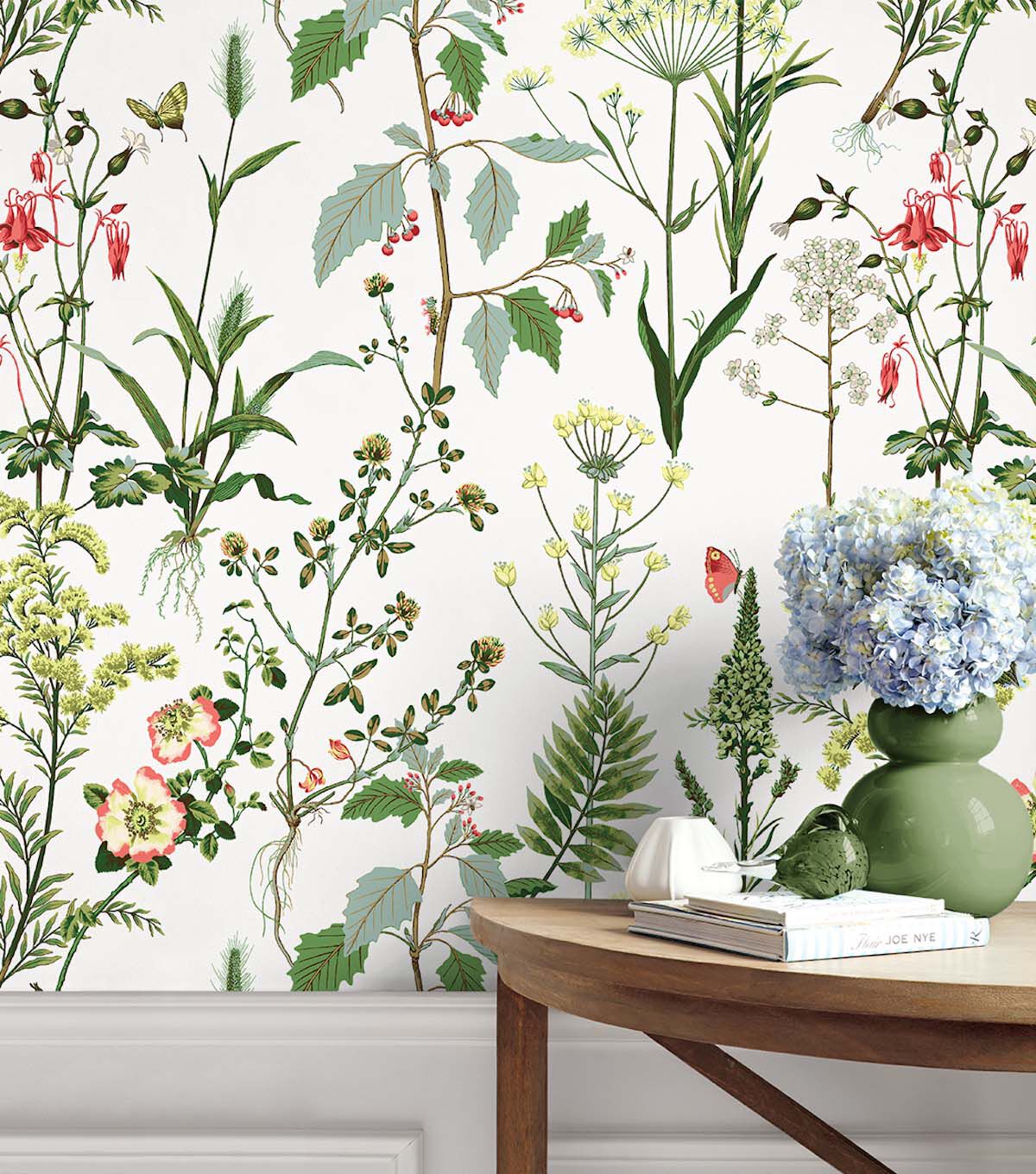 Peak of the season, Berkshire Botanical peel and stick wallpaper by Surface Style offers an abundance of beautifully rendered Northeast summer wildflowers. Butterflies visit of these sweet-smelling assortments of blooms. Berkshire Botanical is an easy way to freshen up your décor. Printed on durable, smooth vinyl our self-adhesive peel and stick wallpapers are easy to use, reposition and 100% removable. Ideal for giving your home a quick, stylish refresh. Each roll is 20.5 in. wide by 18 ft. long , covers 30.75 sq. ft. Made in the USA.