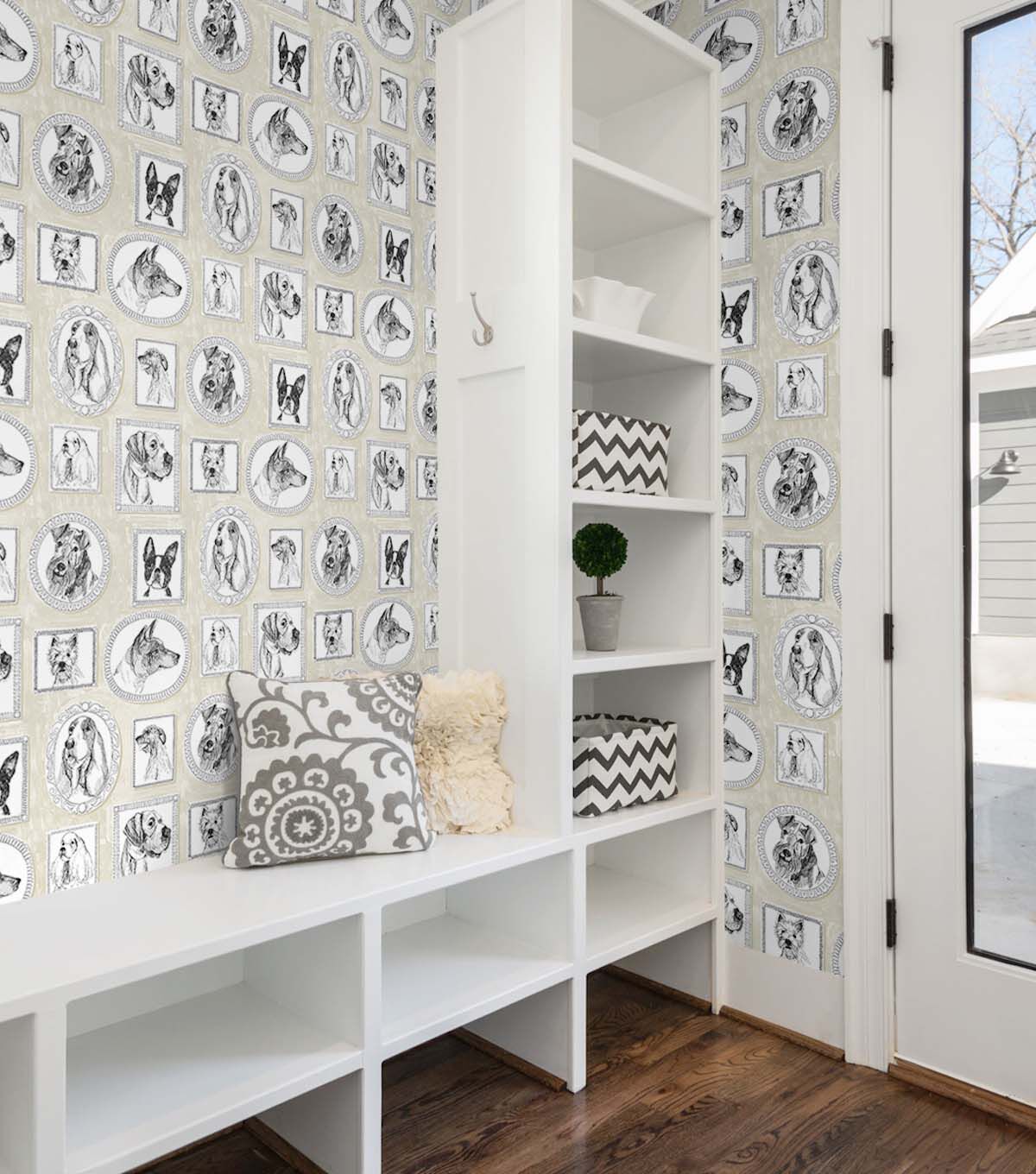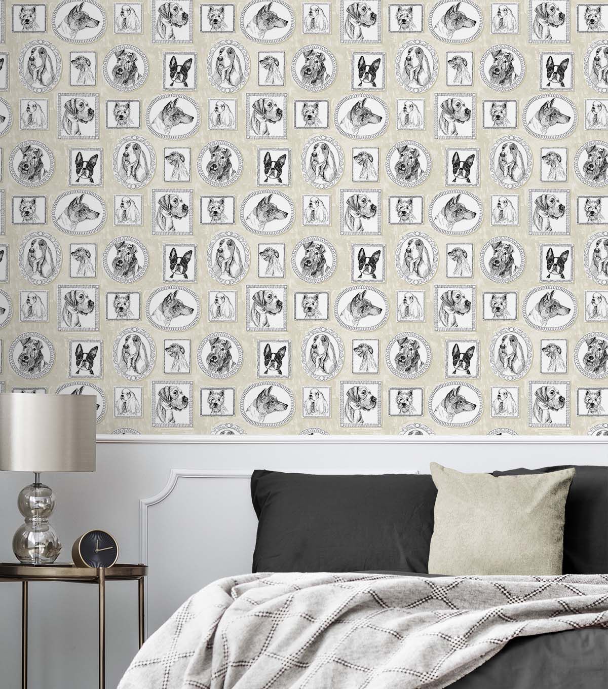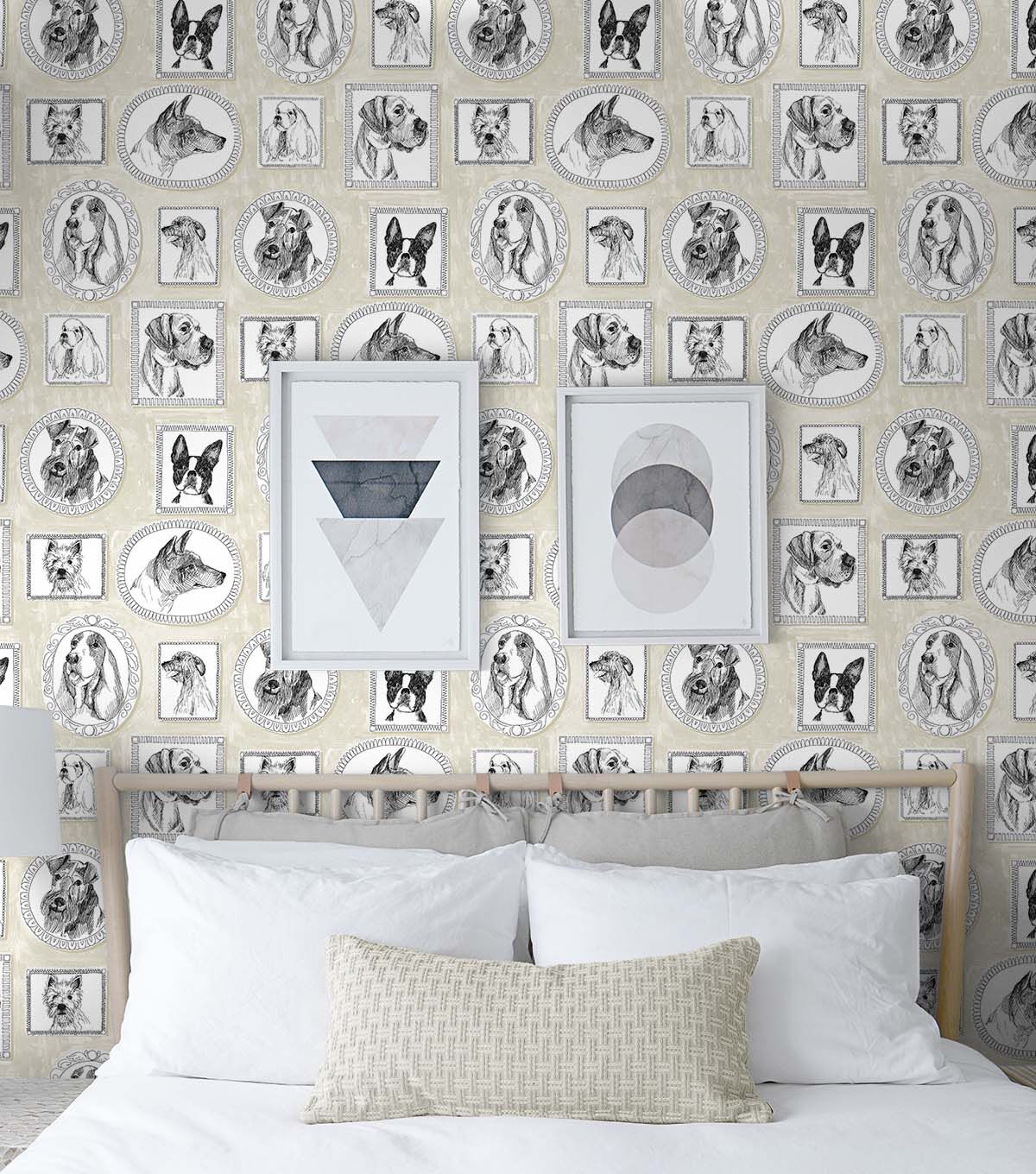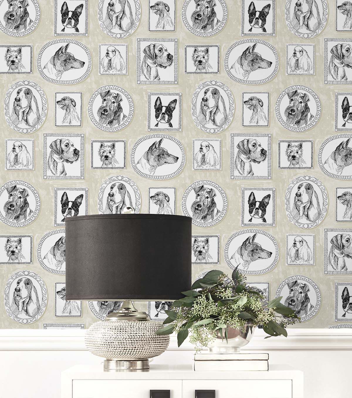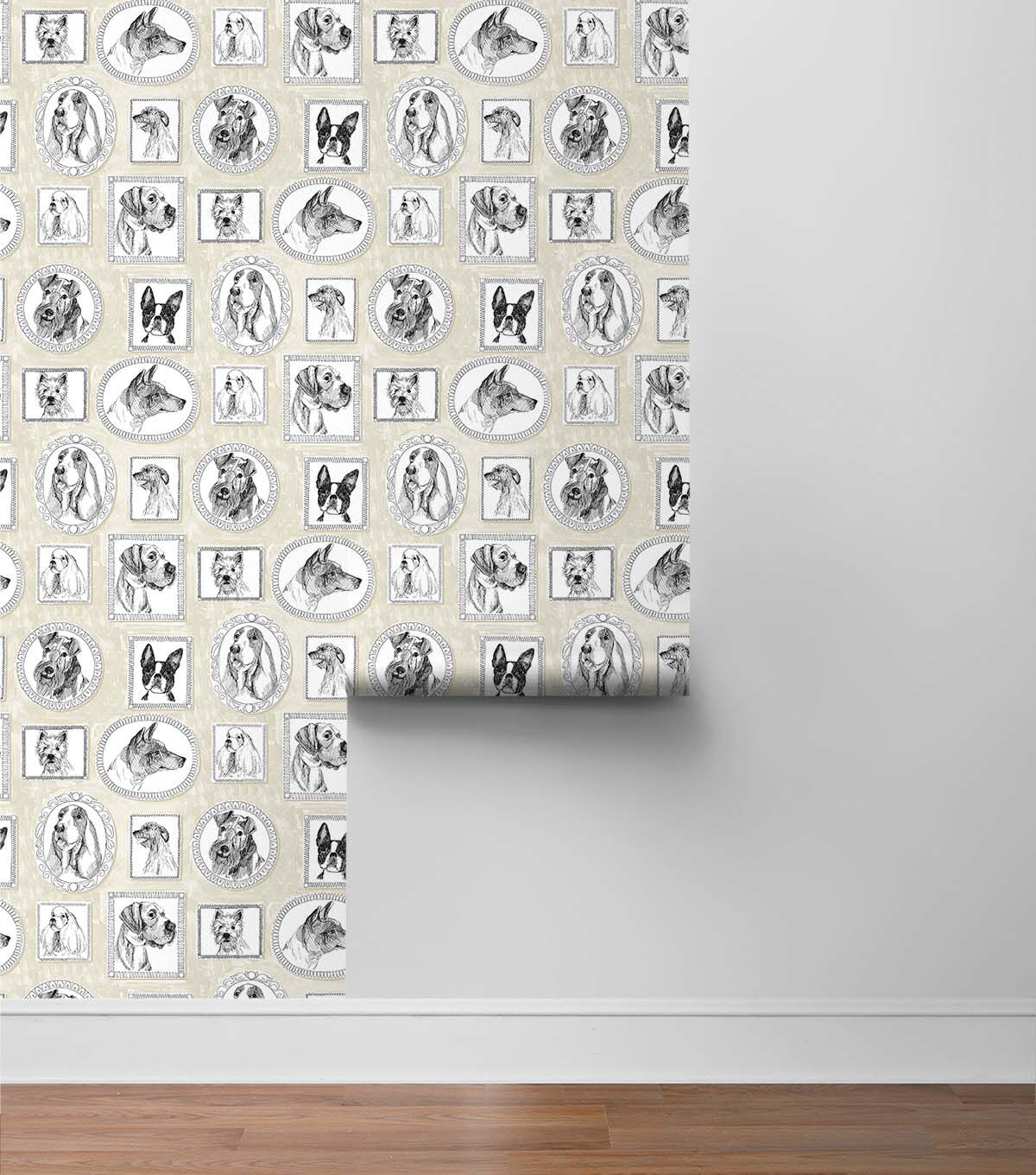 Simple and charming are these classic Victorian framed portraits of our canine family and friends by Surface Style. Pup Portraits feature multiple dog breeds, enriched by a neutral-colored background. This fun, charming wallpaper pattern is sure to capture your heart. Ideal for renters and homeowners, short or long-term use. DIY Friendly, printed on durable, vinyl our self-adhesive wallpaper is easy to apply, repositionable and 100% removable without any sticky residue left behind. Each roll is 20.5 in. wide by 18 ft. long, covers 30.75 sq. ft. Made in the USA.