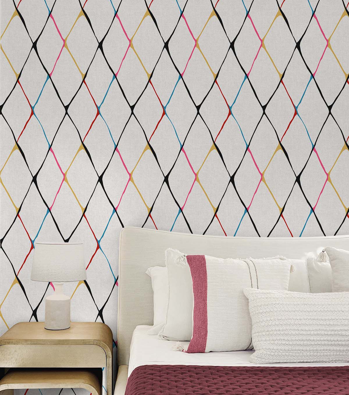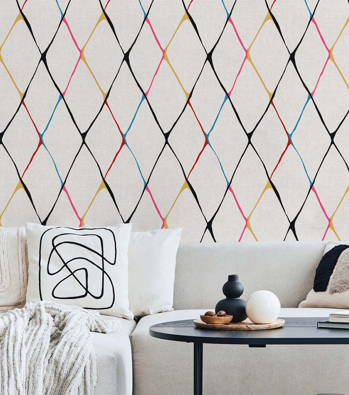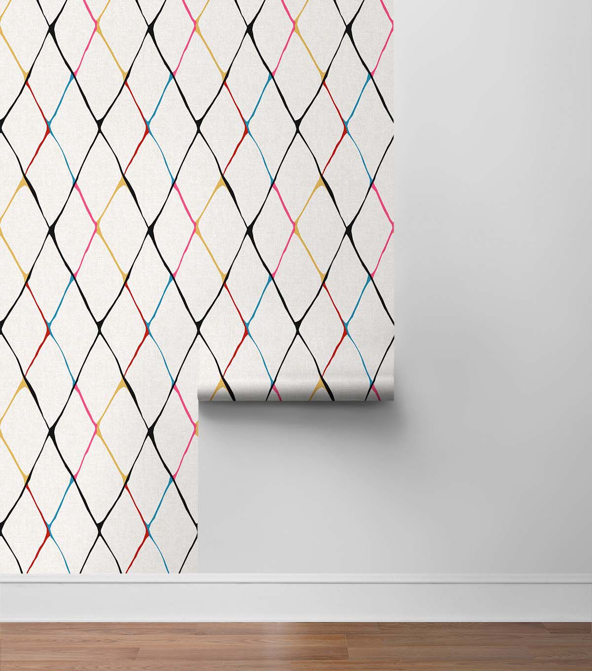 The free-form design of Diamondlike peel and stick wallpaper enlivens with a new take on the classic grid design. Fun and spontaneous Diamondlike will bring new life to your walls and décor. Printed on high quality vinyl self-adhesive it is not only easy to apply and reposition but also 100% removable without leaving any stick residue behind. DIY Friendly. Each roll is 20.5 in. wide by 18 ft. long. Made in the USA.