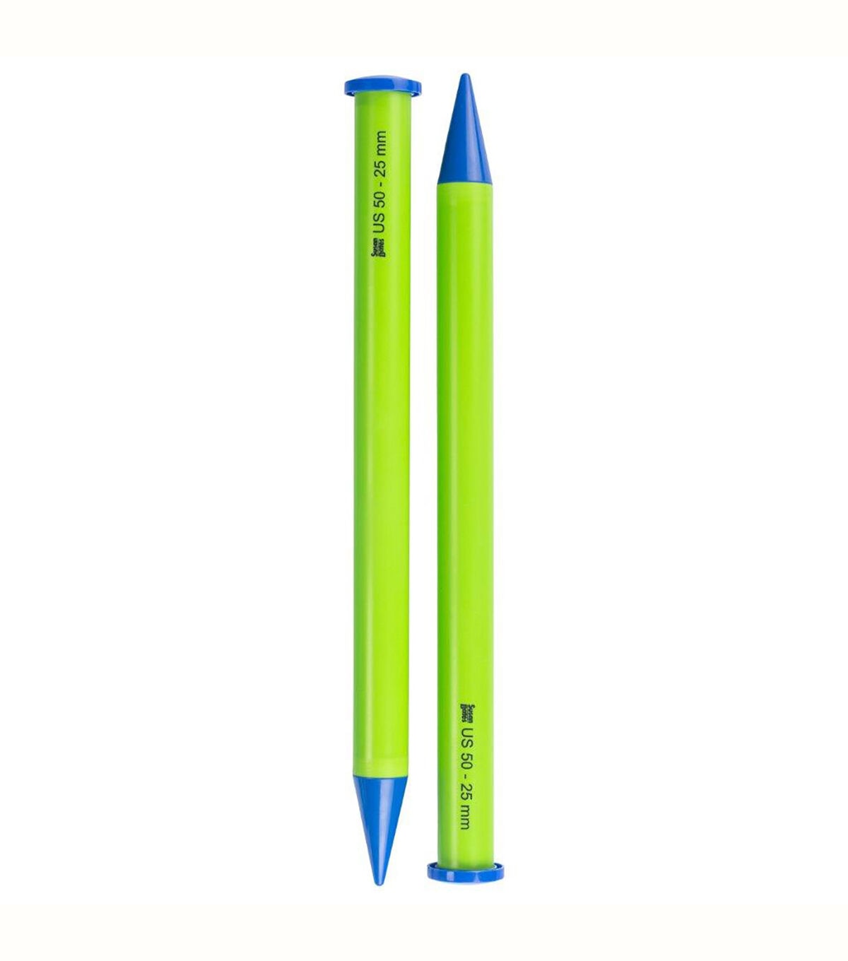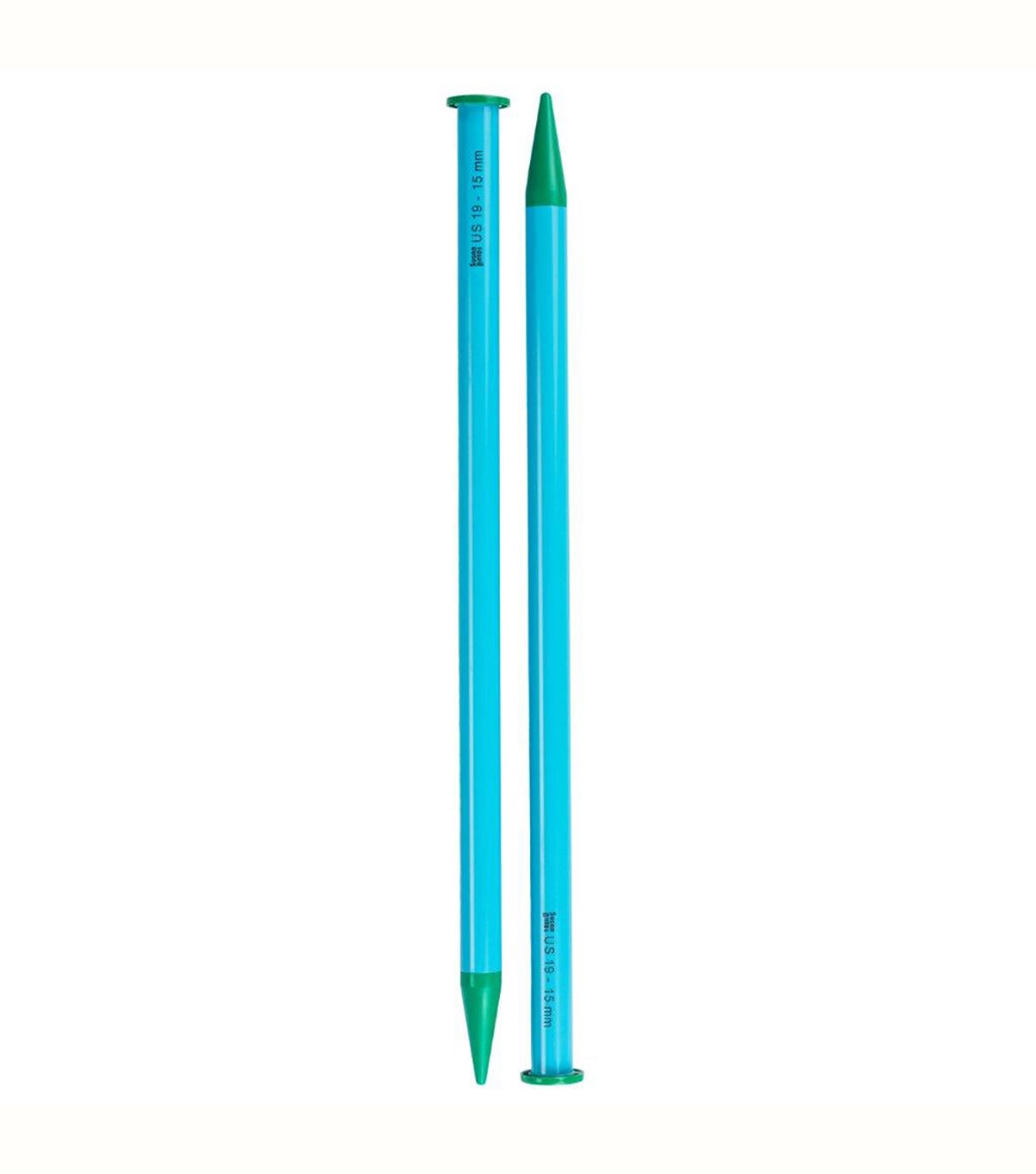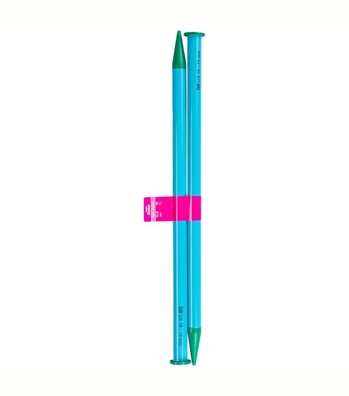 Susan Bates Luxite Jiffy 14" Knitting Needles are jumbo sized for those rapid projects! Lightweight and inexpensive, plastic is a great alternative to aluminum. Each pair is created with contrasting colored tips and knobs.