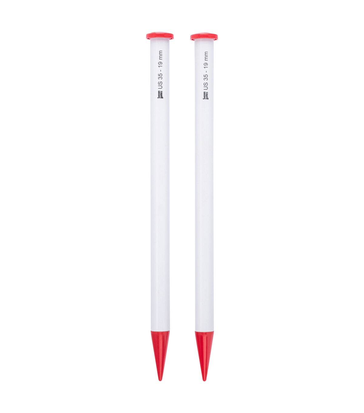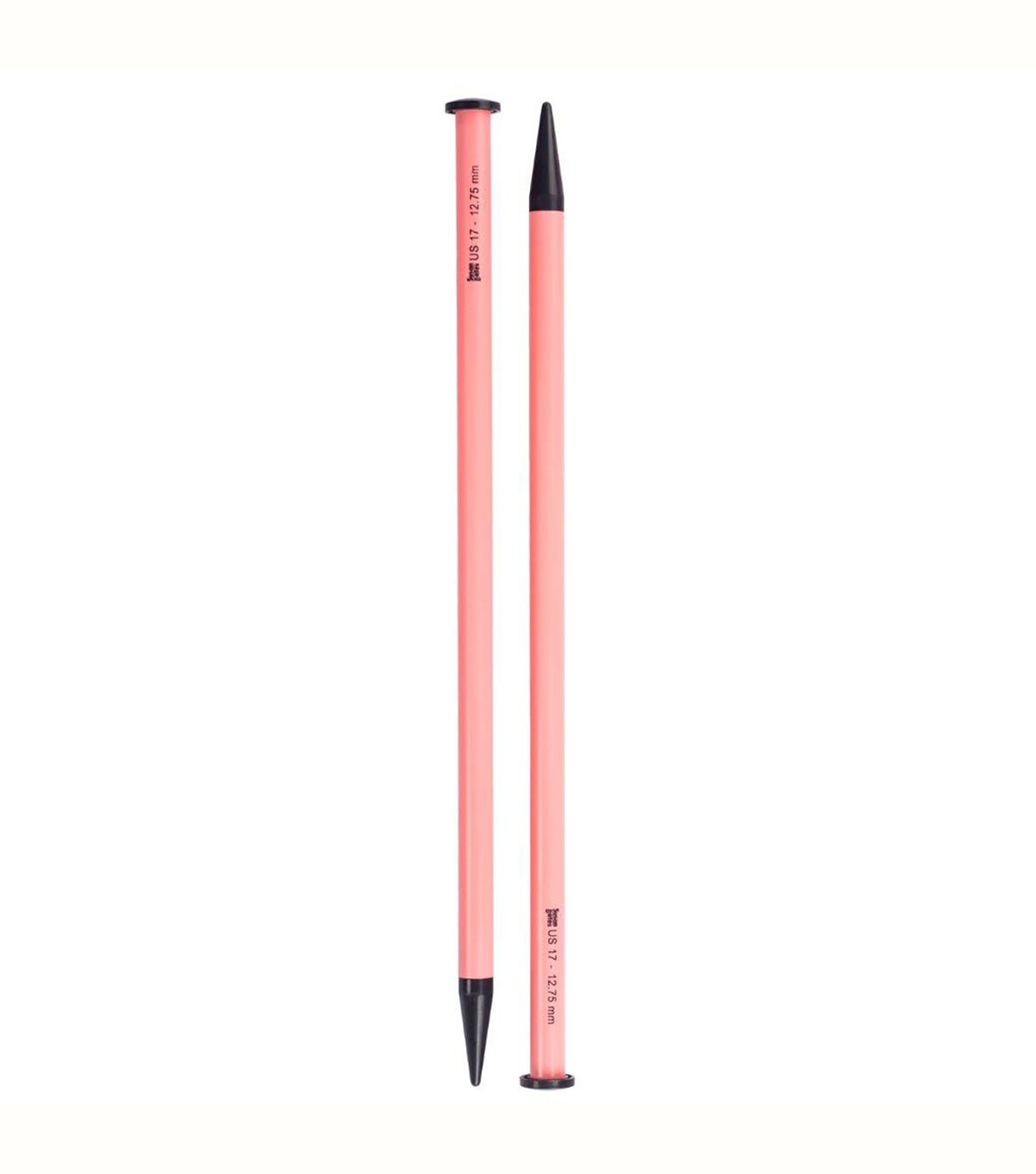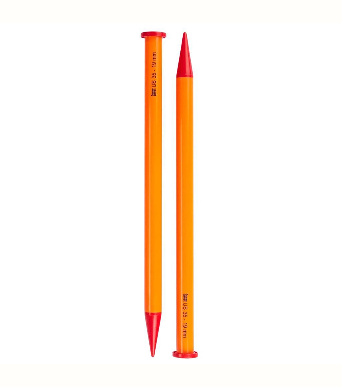 Susan Bates Luxite Jiffy 14" Knitting Needles are jumbo sized for those rapid projects! Lightweight and inexpensive, plastic is a great alternative to aluminum. Each pair is created with contrasting colored tips and knobs.