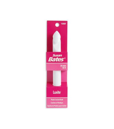 These hooks offer a warm; lightweight, inexpensive alternative to aluminum for bulky yarns. Luxite is a specially formulated plastic material that is very durable. Our famous in line head helps reduce wrist motion for fatigue free crocheting and helps you maintain a more consistent gauge.