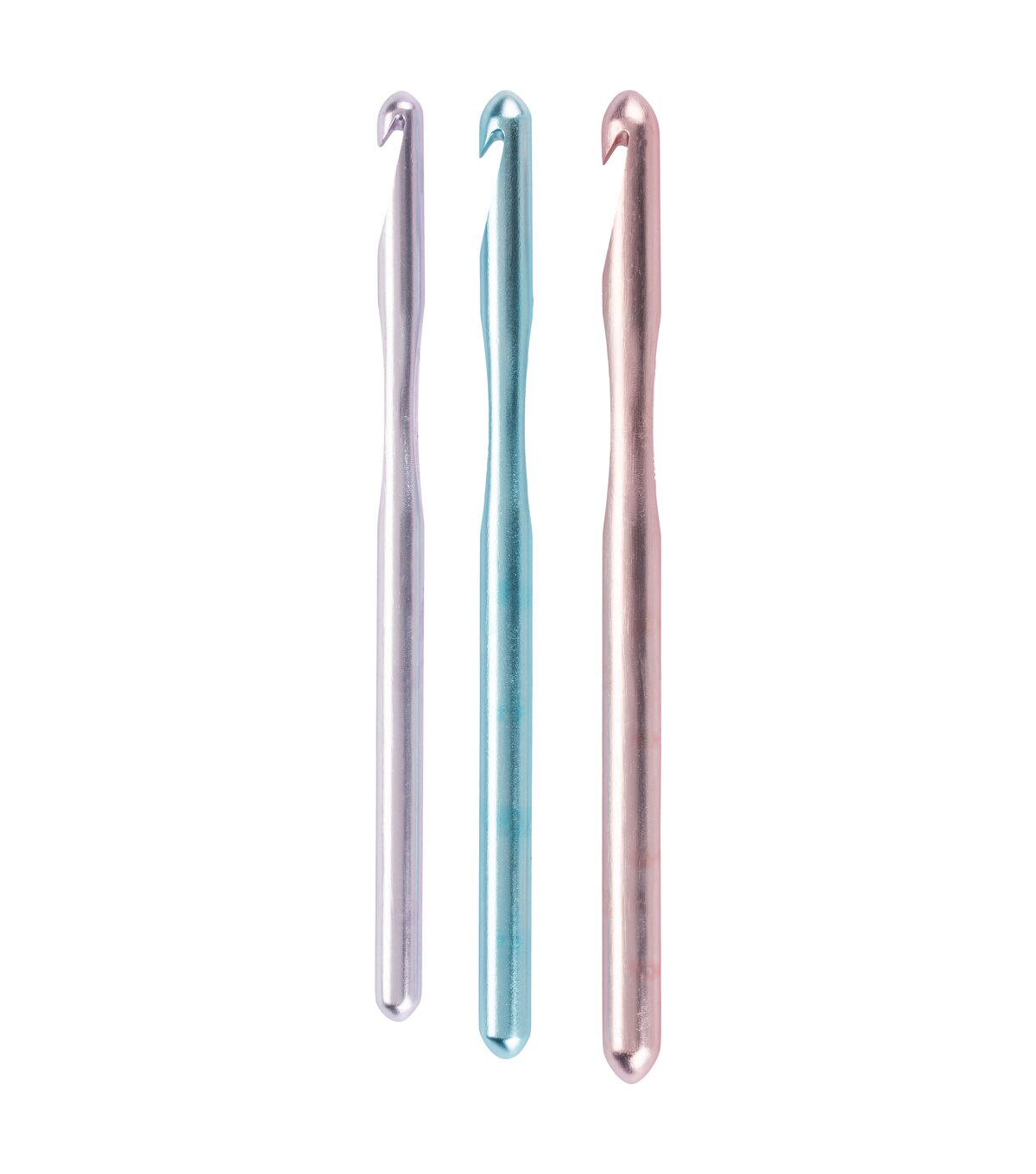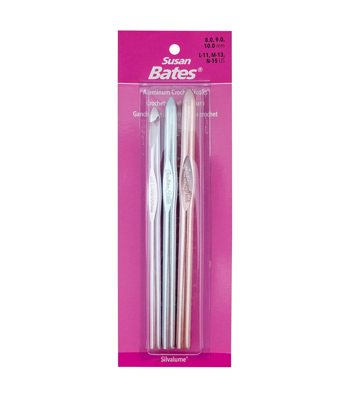 Choose fine crochet hooks like the Susan Bates Silvalume Crochet Hooks for your crochet projects. Made of durable aluminum, these hooks come with a smooth finish for easy knitting. Polished to perfection, thread and yarns slide easily through the surface of these hooks. Available in various sizes, these hooks are specially designed for crochet enthusiasts. Make lovely sweaters, cardigans, booties, mittens and hats in different patterns using these crochet hooks.