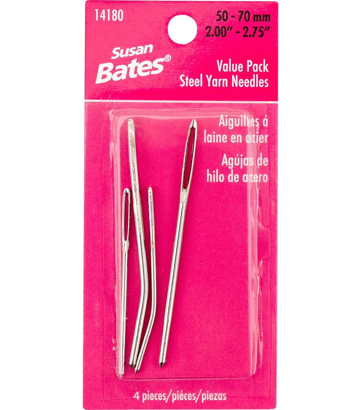 Susan Bates-Steel Yarn Needles Value Pack. These needles are perfect for any knitter! This package contains four assorted steel yarn needles in sizes between 2 inches and 2-3/4 inches. Imported.