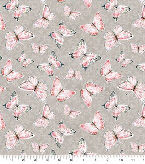 Susan Winget Blush Butterflies on Gray Premium Cotton Fabric