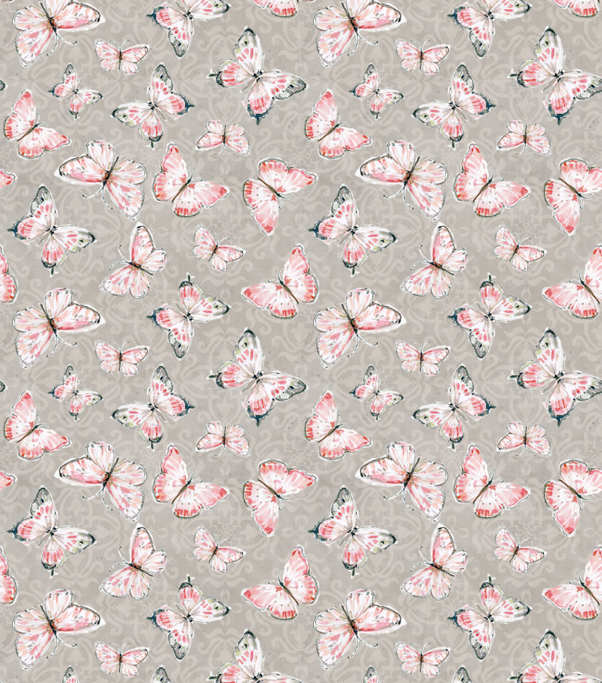 • Susan Winget Blush Butterflies on Gray Premium Cotton Fabric