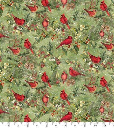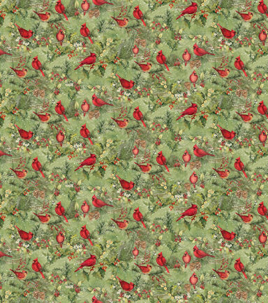 • Susan Winget Cardinals on Branches Christmas Cotton Fabric