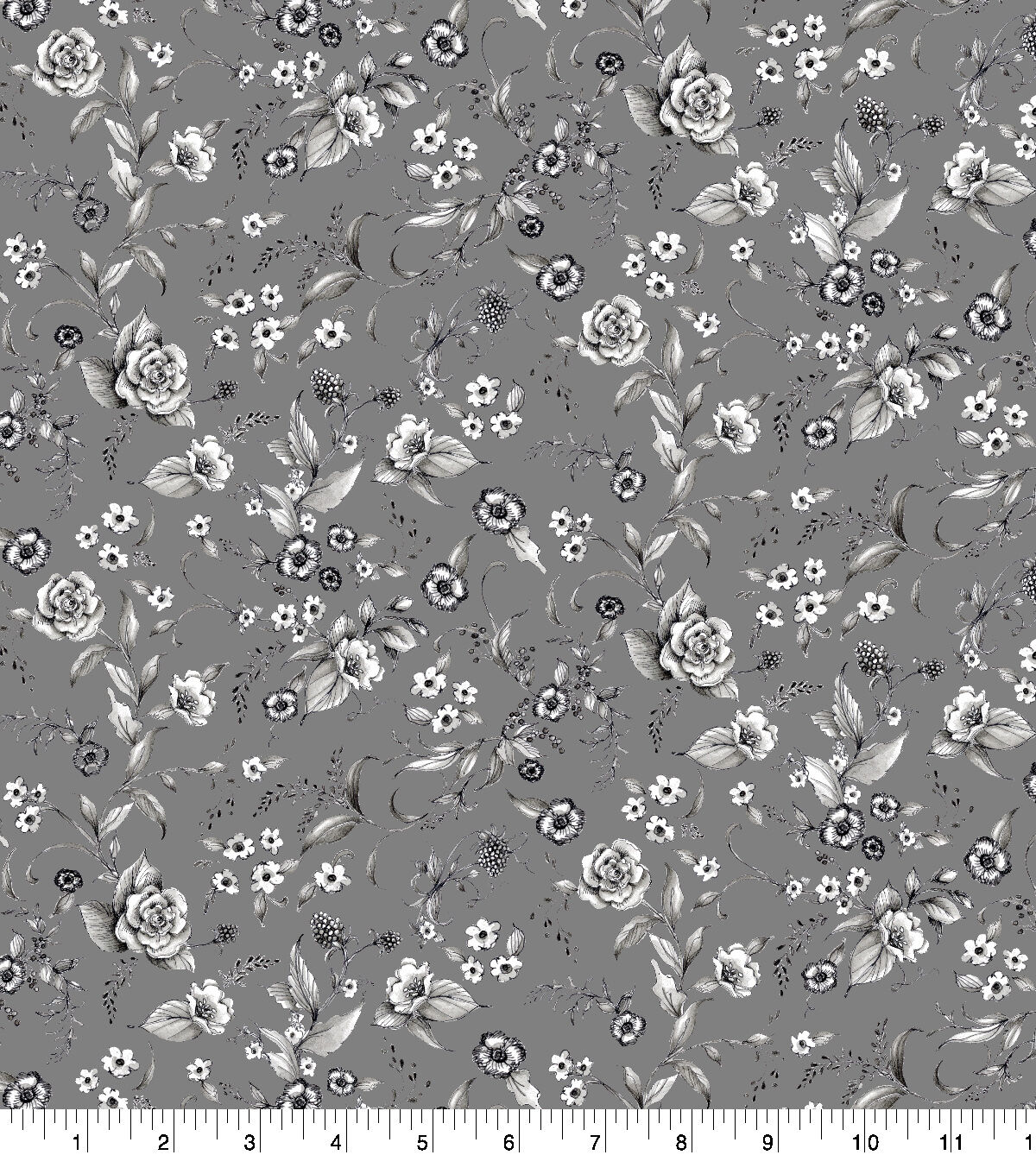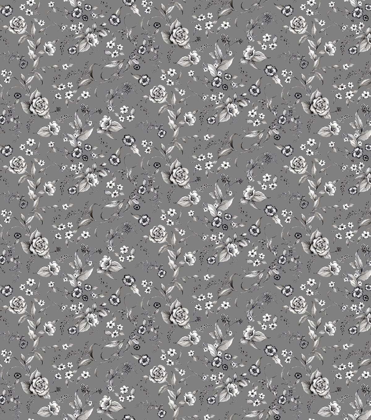• Susan Winget Nature Floral Toss Gray Premium Prints Cotton Fabric