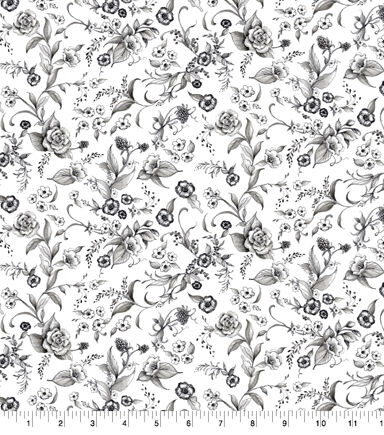 • Susan Winget Nature Floral Toss White Premium Cotton Fabric