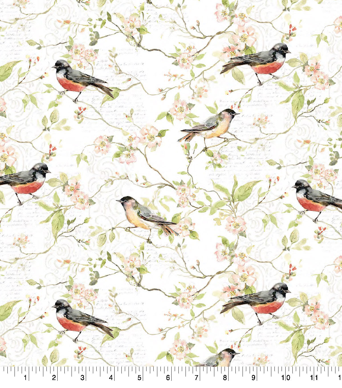 • Susan Winget Spring Birds White Premium Cotton Fabric