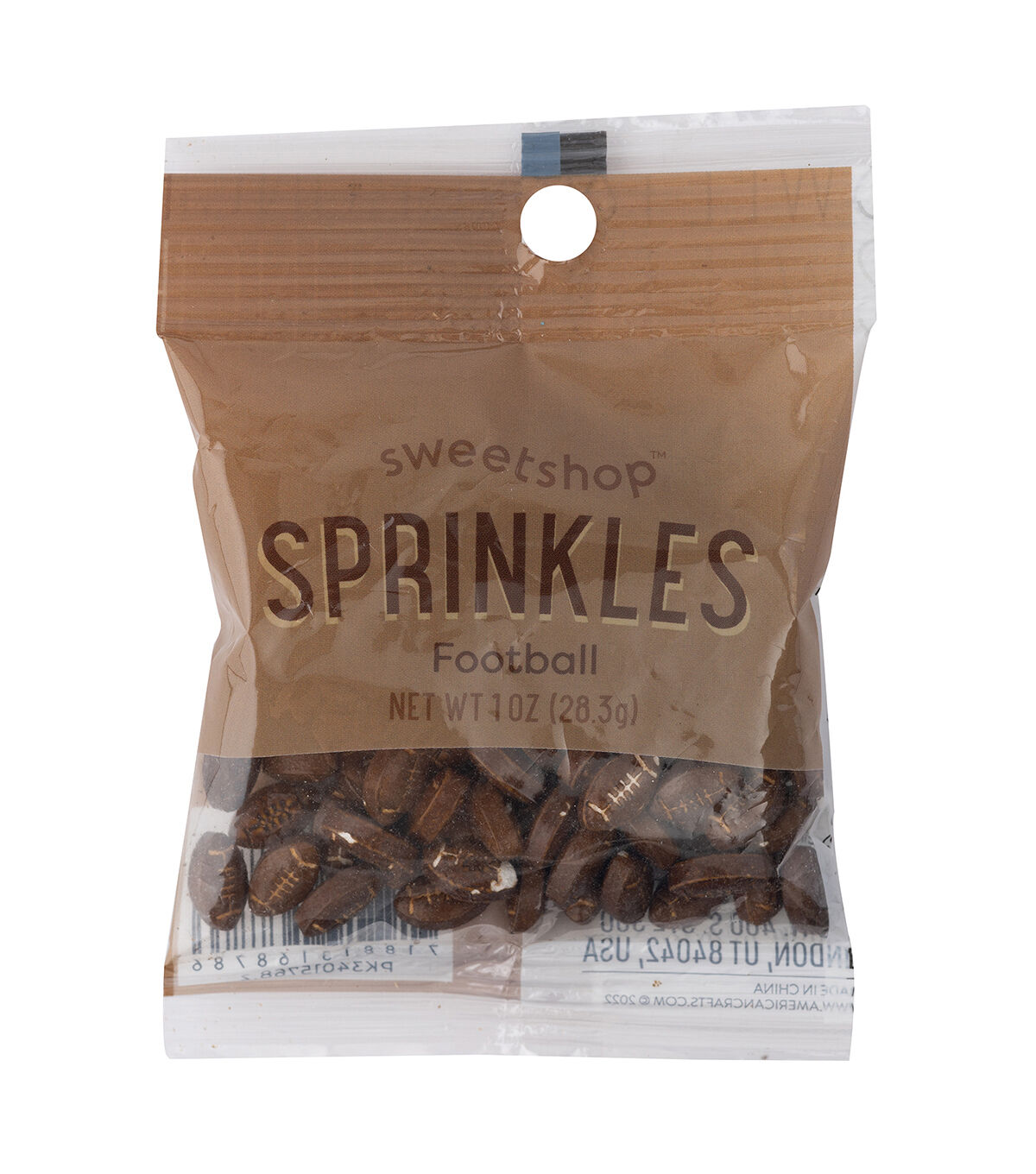 Sprinkles are an easy way to add a pop of color and texture to your treats! And SweetShop has a wide variety of pre-mixed sprinkles that complement any handmade sweet. Choose your favorites, mix and match, and get creative. Use them for cakes, cupcakes, cookies, brownies, and even pancakes and waffles! This package includes 1 oz of pre-mixed sprinkles. Style: Pressed Candy Footballs