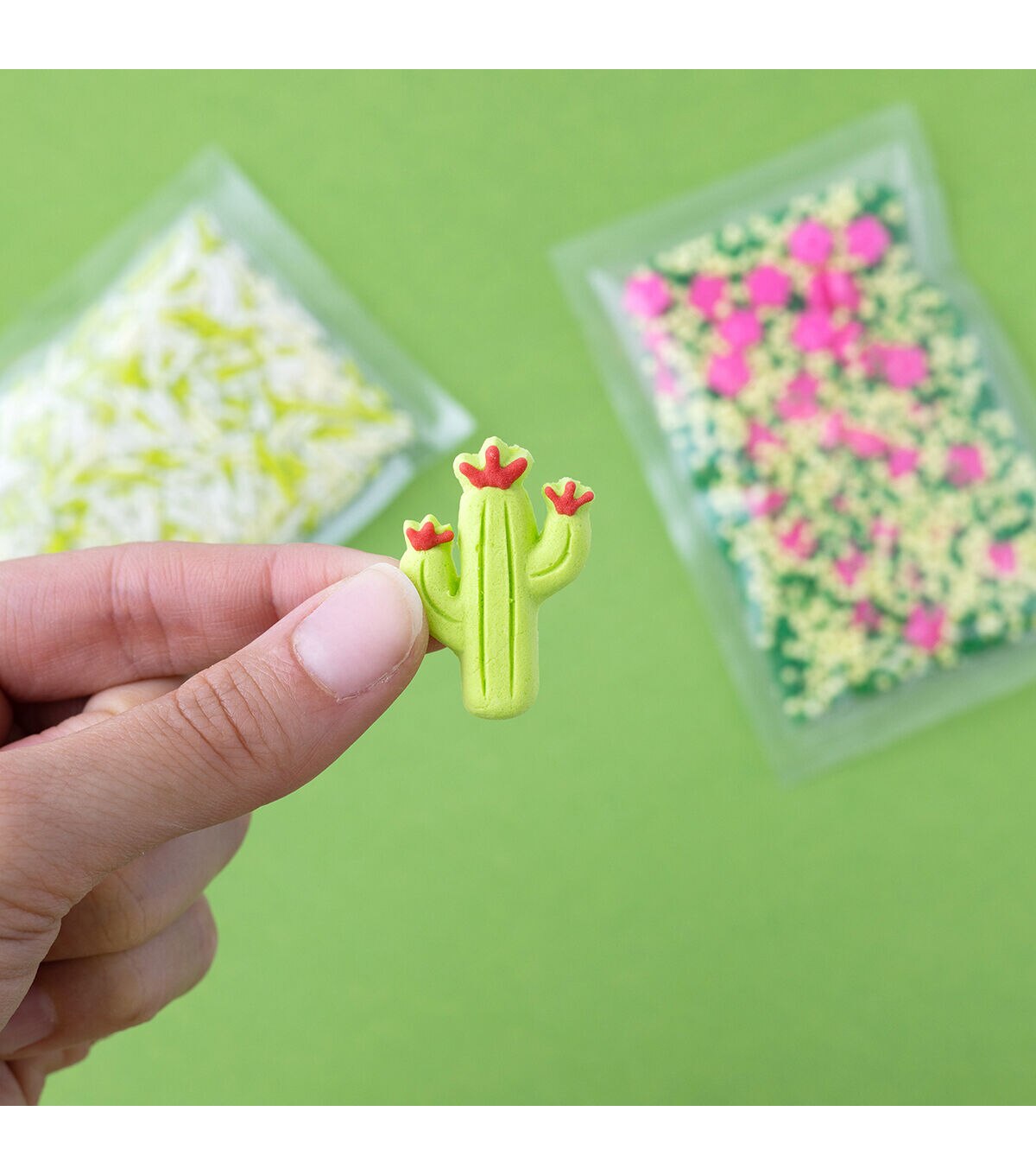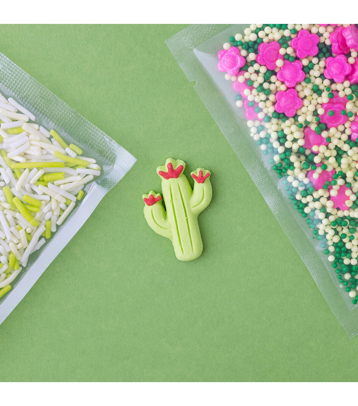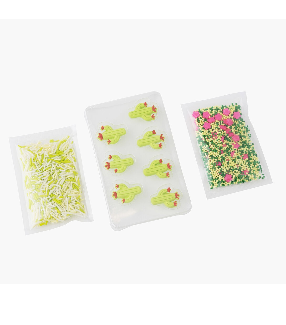 SweetShop decorating kits are great for themed parties and adding a little something extra to any treat. They are an easy way to spruce up store-bought treats too! Mix and match colors and sets for any special occasion! This package includes 7 icing decorations and 2 coordinating sprinkle mixes. Style: Cactus