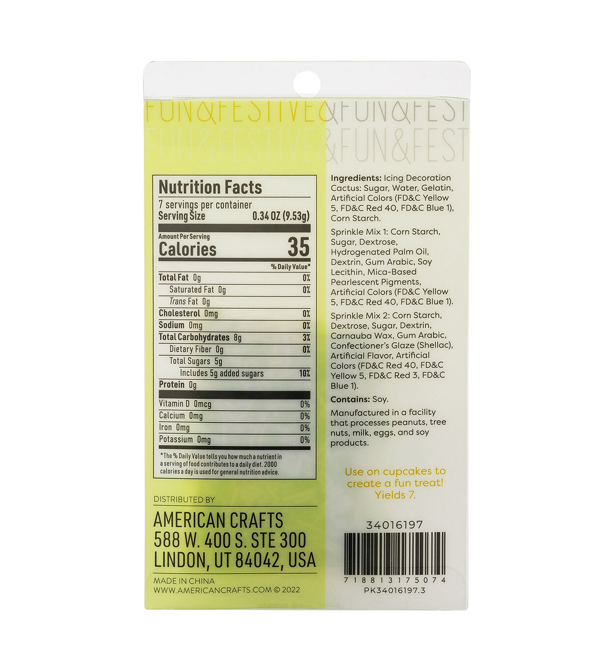 - INCLUDES: 7 icing decorations and 2 coordinating sprinkle mixes
