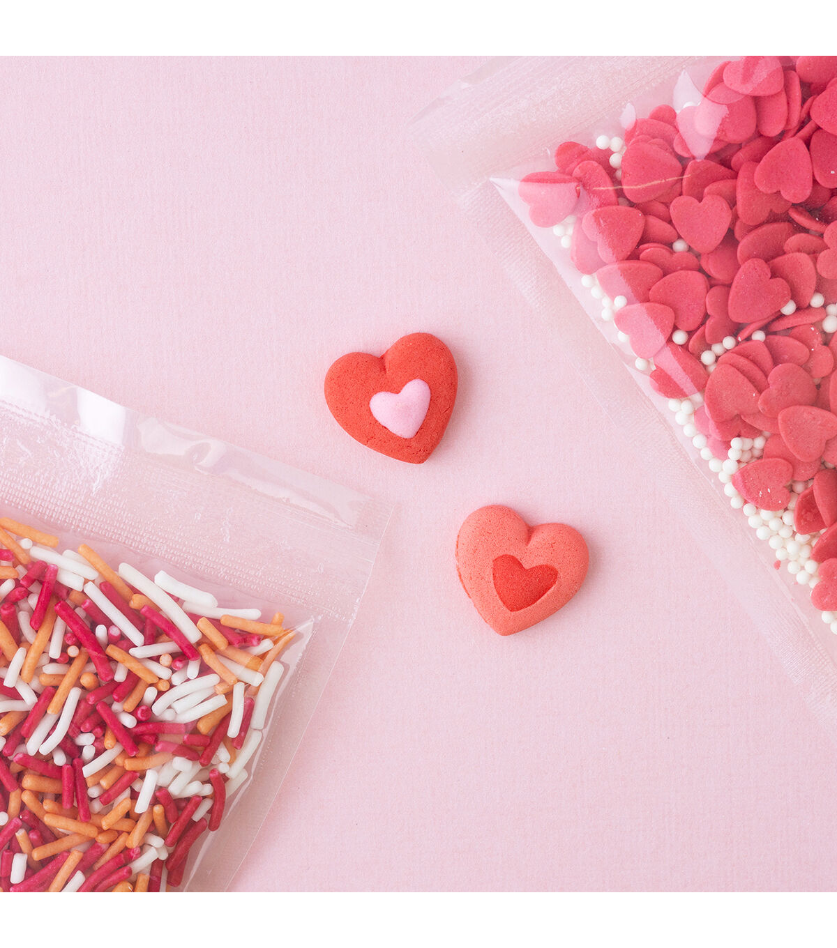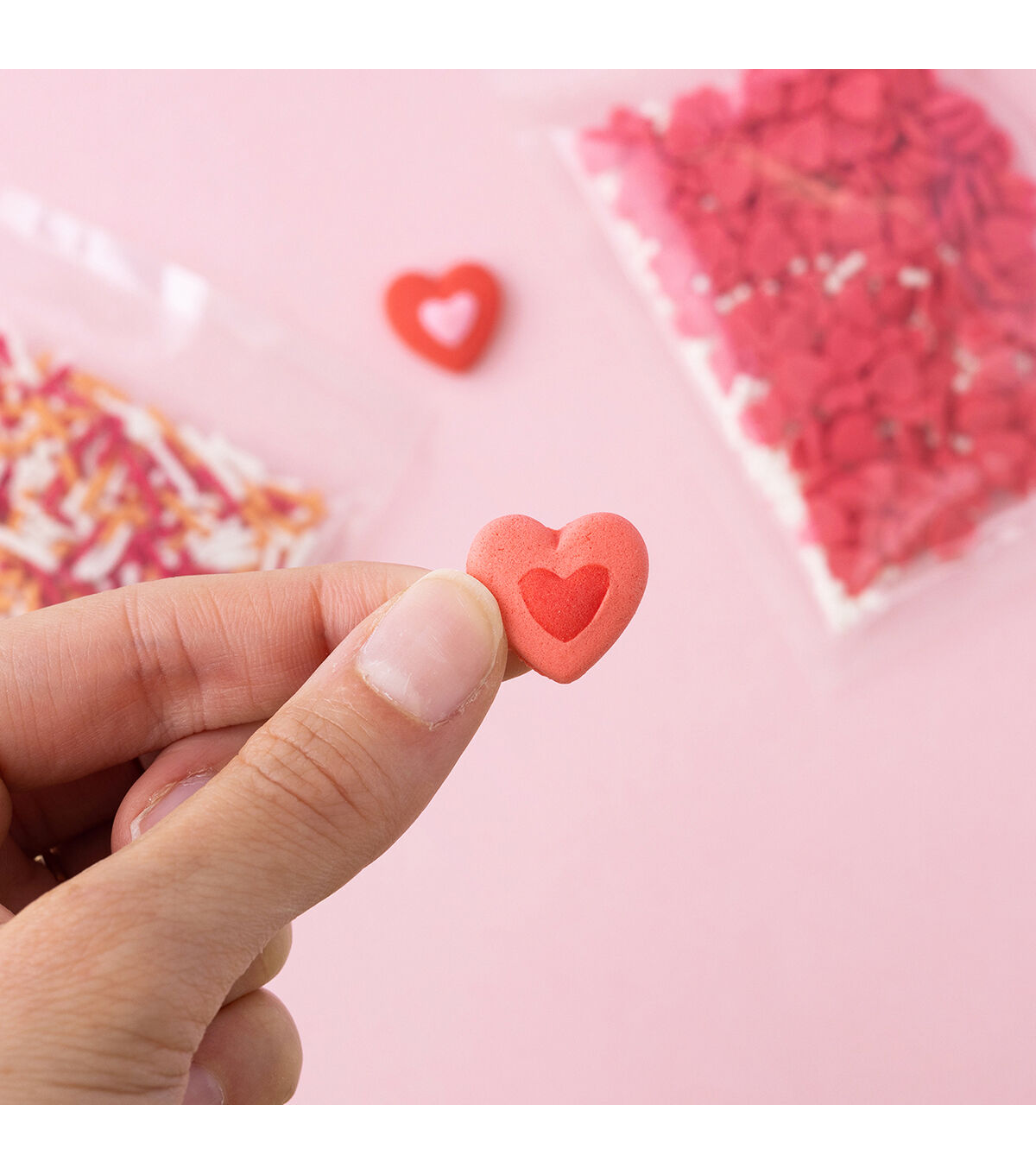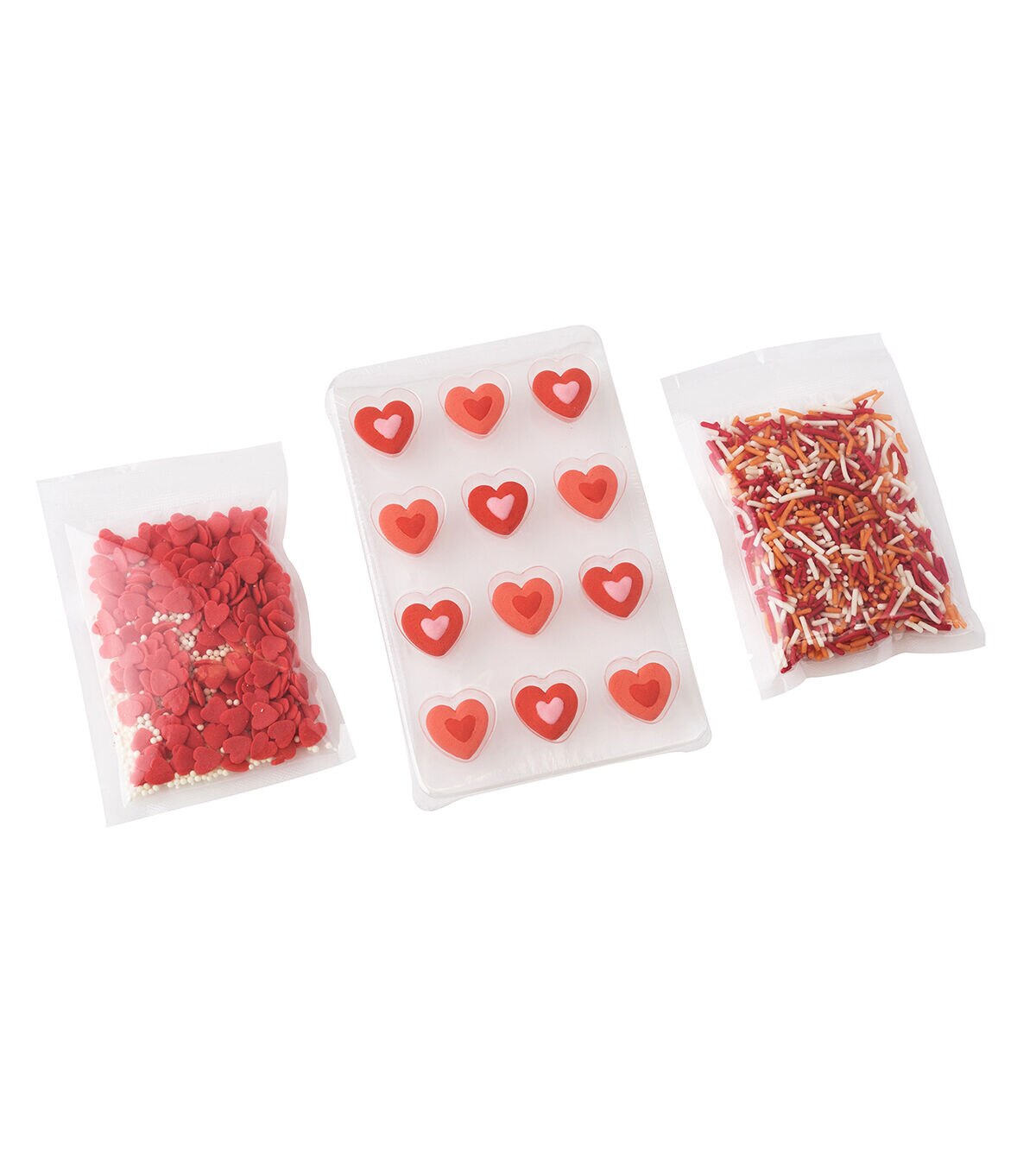 SweetShop decorating kits are great for themed parties and adding a little something extra to any treat. They are an easy way to spruce up store-bought treats too! Mix and match colors and sets for any special occasion! This package includes 12 icing decorations and 2 coordinating sprinkle mixes. Style: Hearts