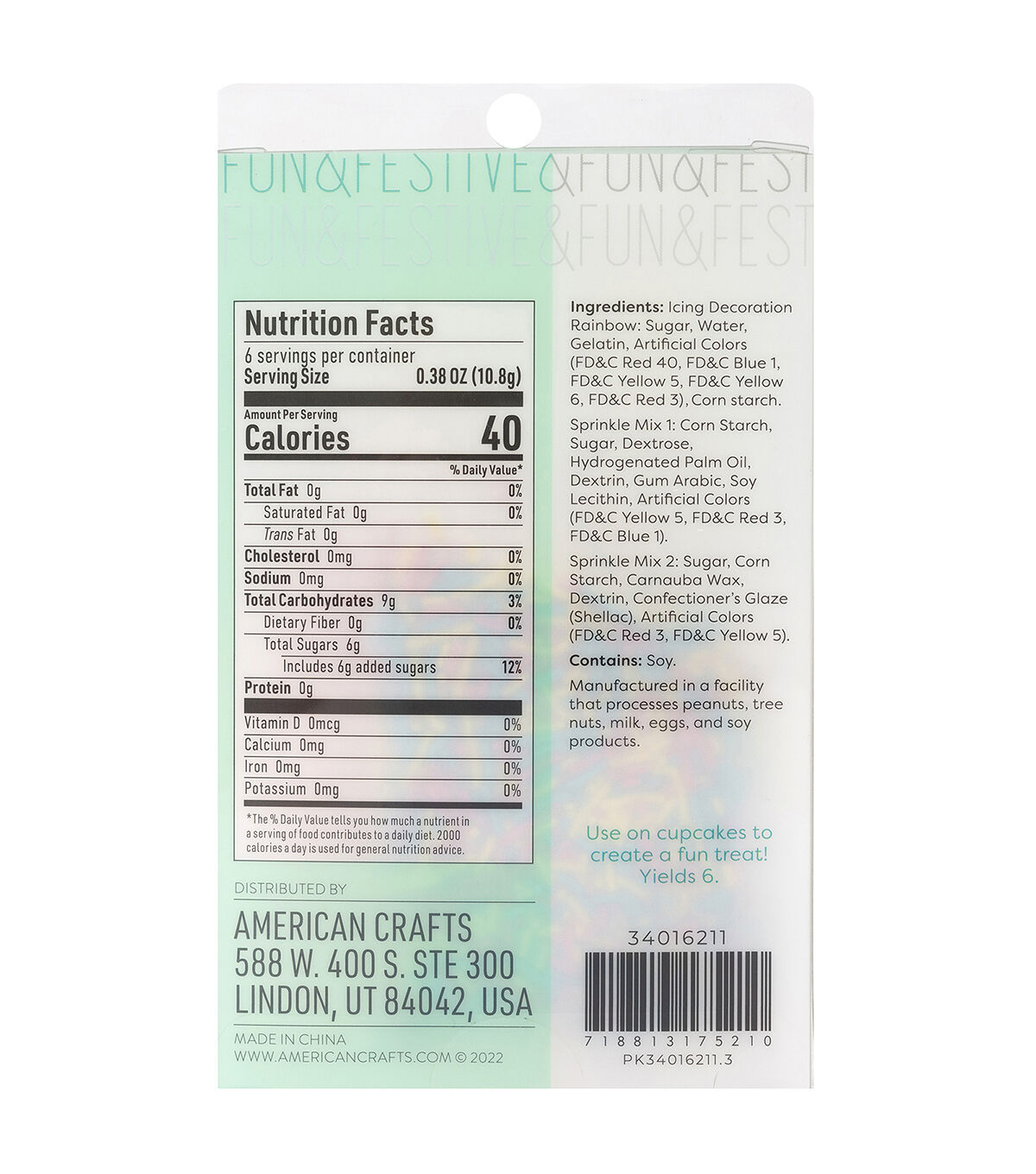 - INCLUDES: 6 icing decorations and 2 coordinating sprinkle mixes
