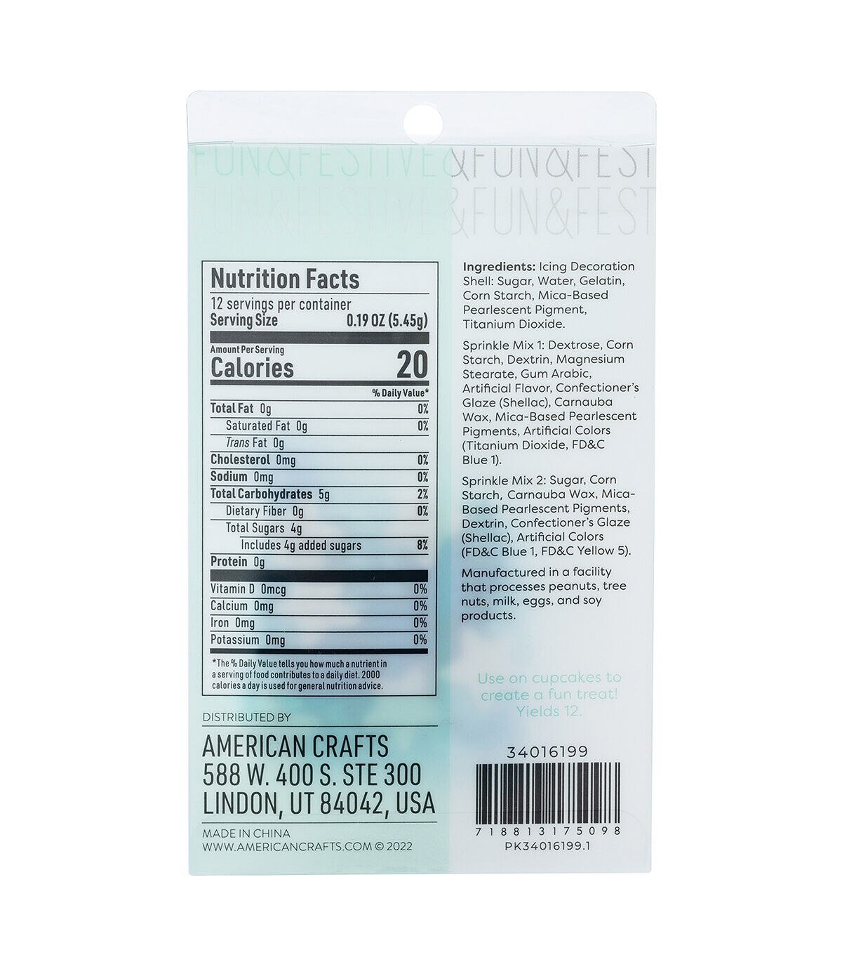 - INCLUDES: 12 icing decorations and 2 coordinating sprinkle mixes