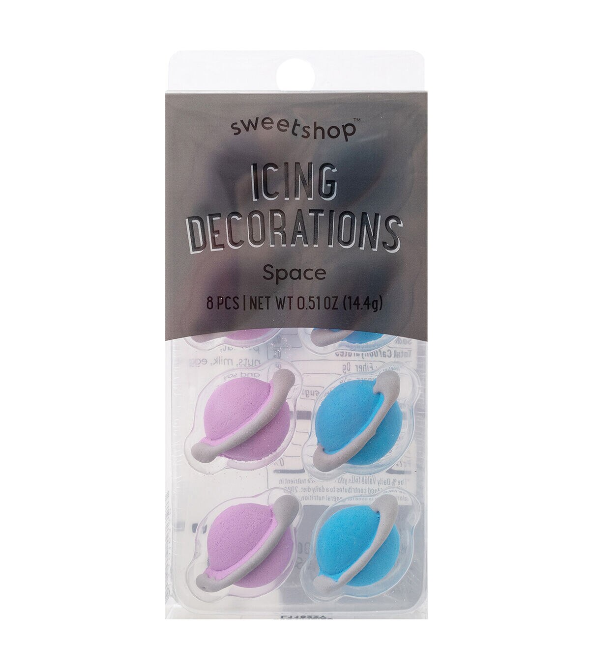 Dress up your delicious desserts with edible embellishments! These icing decorations are an easy way to top off cupcakes, cakes, donuts, and so much more. Mix and match characters and designs for unique treats. This package includes 8 edible icing decorations. Design: Space