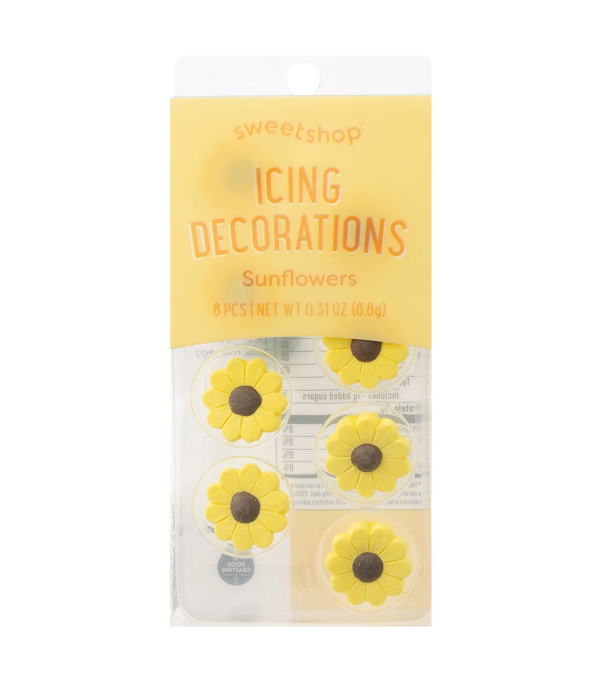 Dress up your delicious desserts with edible embellishments! These icing decorations are an easy way to top off cupcakes, cakes, donuts, and so much more. Mix and match characters and designs for unique treats. This package includes 8 edible icing decorations. Design: Sunflowers