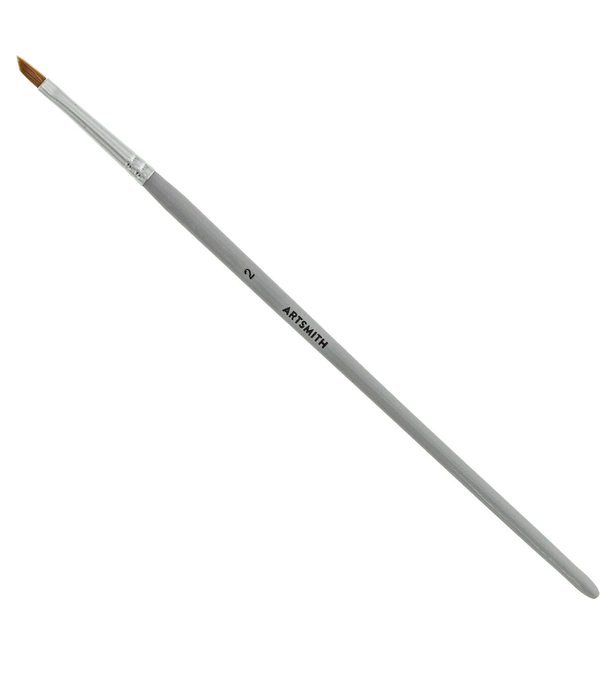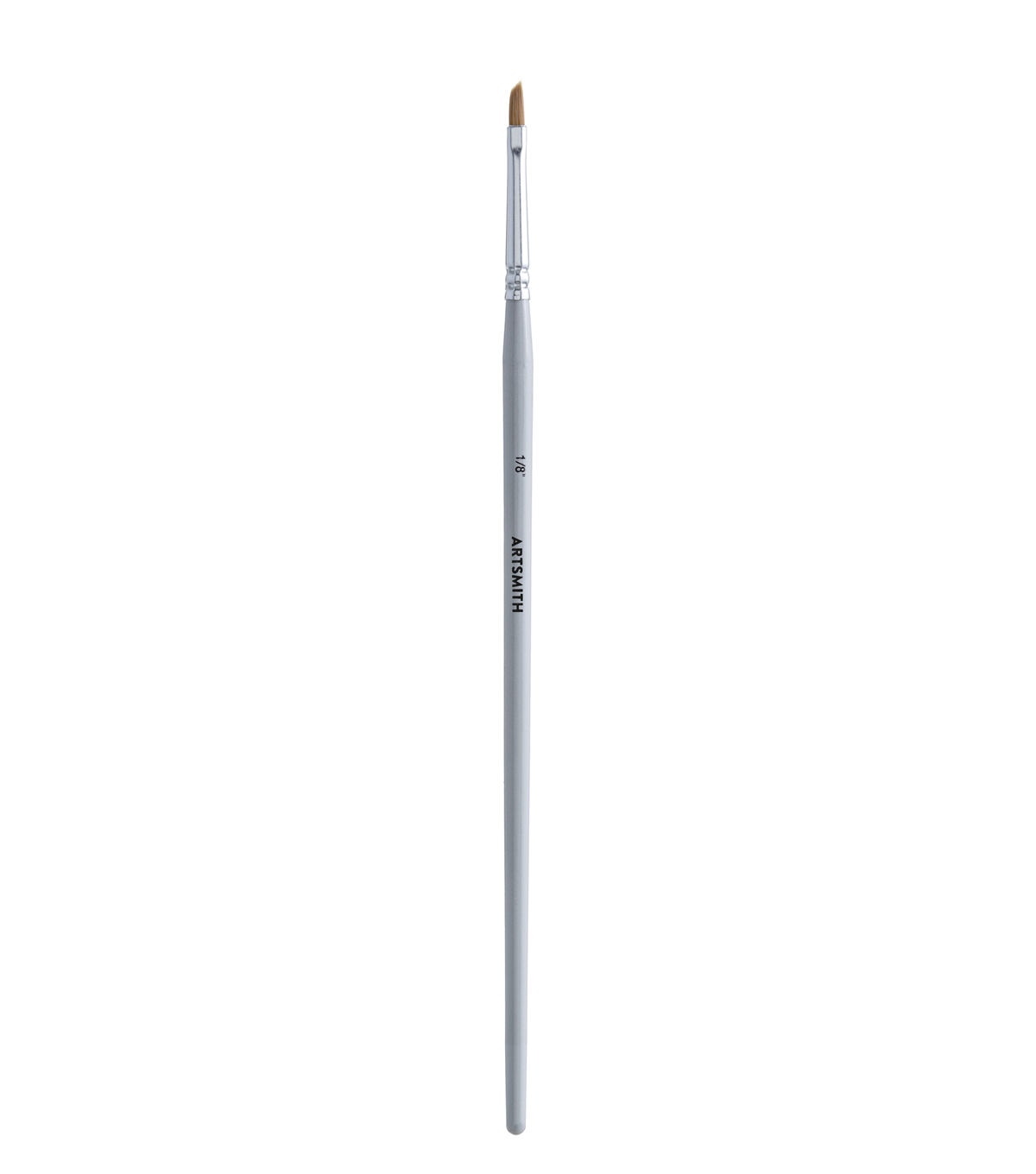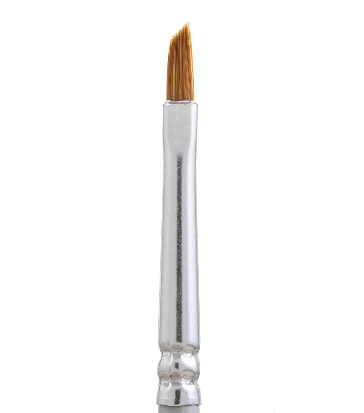 An angled or slanted tip, which is why they are sometimes also known as slanted brushes. A slanted tip for the bristles is especially useful for curves and being able to create lines and shapes that vary in thickness and coverage. Synthetic sable blend is designed for better brushability.