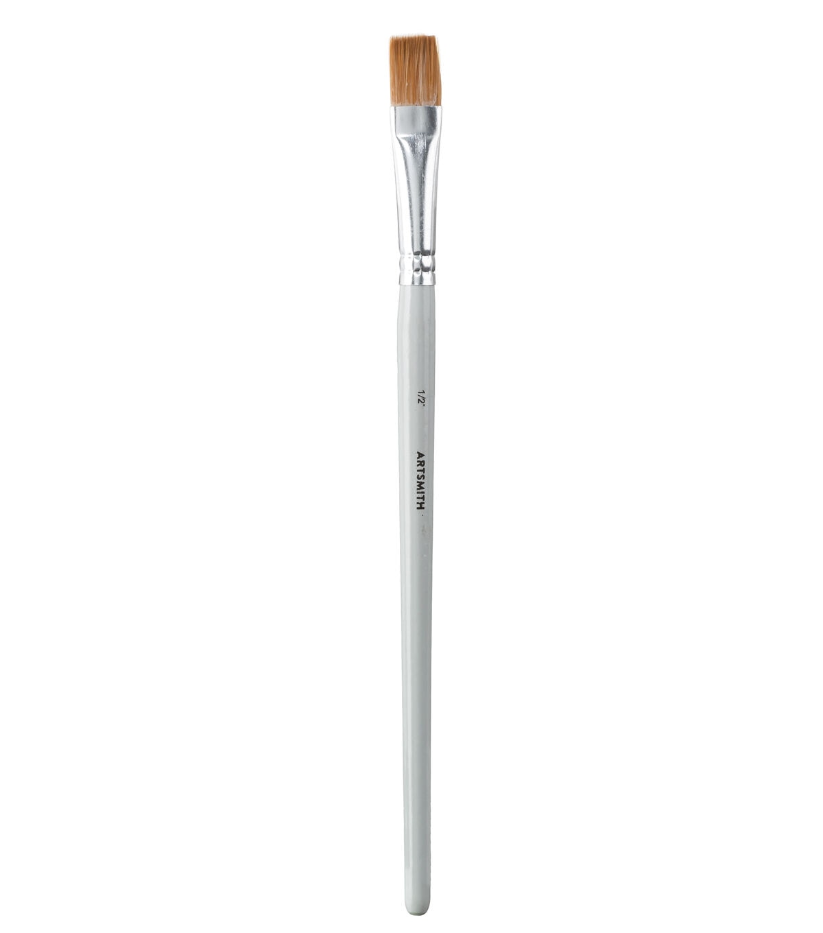 A flat brush is, as the name would suggest, one where the bristles are arranged so that the brush is quite wide but not very thick. The length of the bristles can vary, with some flat brushes having long and some very short bristles. Synthetic sable blend is designed for better brushability.