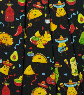 Get Ready to Spice Up Your Next Taco Party with Our Taco Party on Black Quilt Cotton Fabric