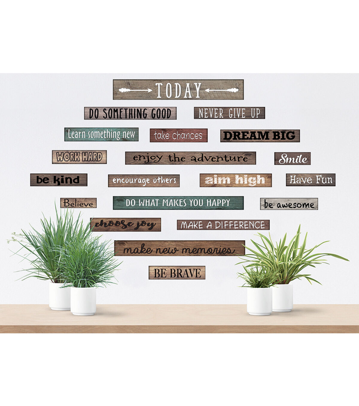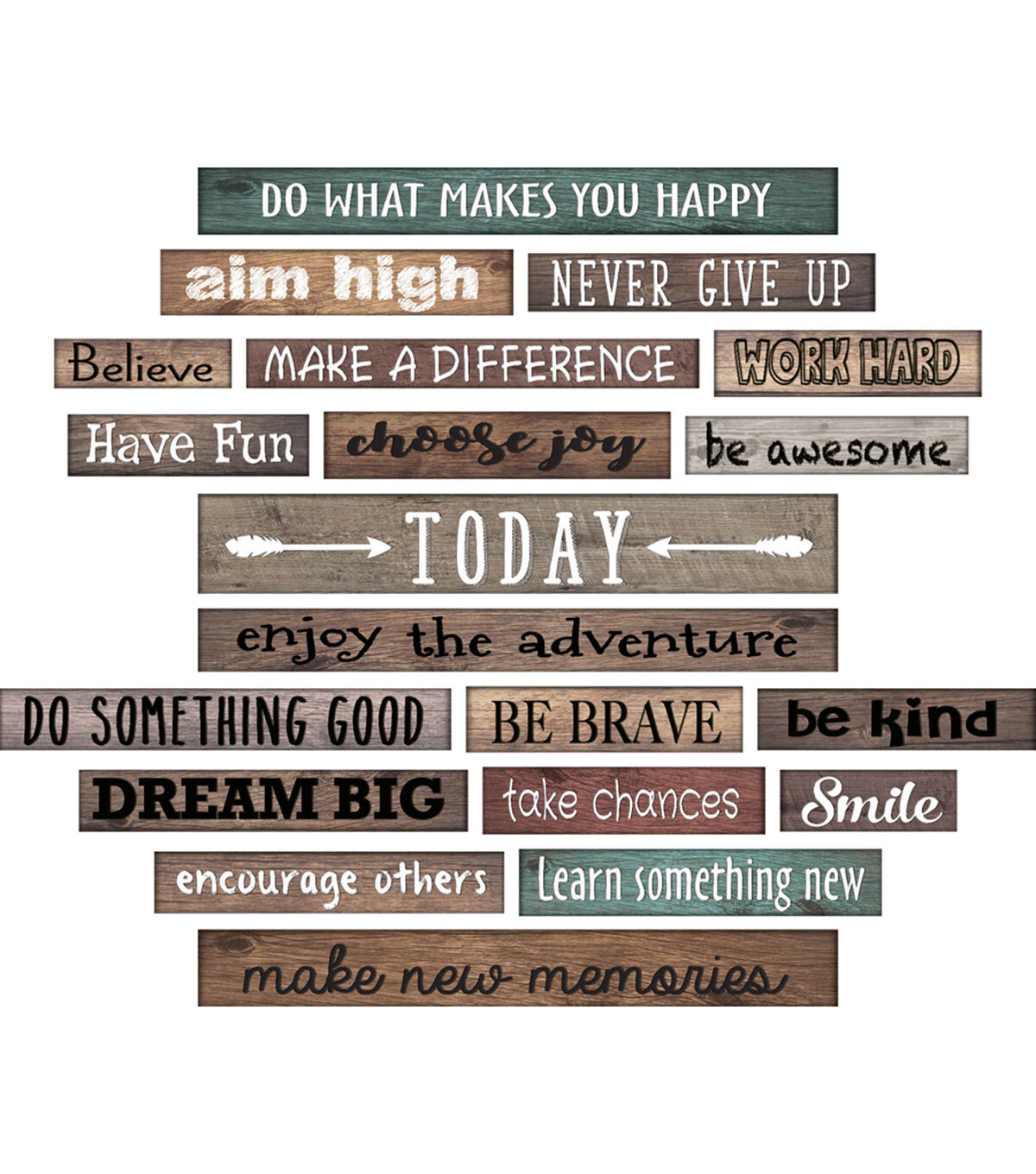 Clingy Thingies are made with a special cling technology. They are not sticky to the touch, yet they stick to any smooth surface and can be easily removed. You can even use water to rinse lint or dirt off the back surface. Clingy Thingies can be used again and again without leaving any mess or residue. They also feature a write-on/wipe-off surface, perfect for notes, labeling, and reminders. Create a gallery on any smooth surface with Home Sweet Classroom Clingy Thingies Motivational Gallery Signs. Each pack includes 20 pieces. 'Today' sign measures 16.75" x 2.625".