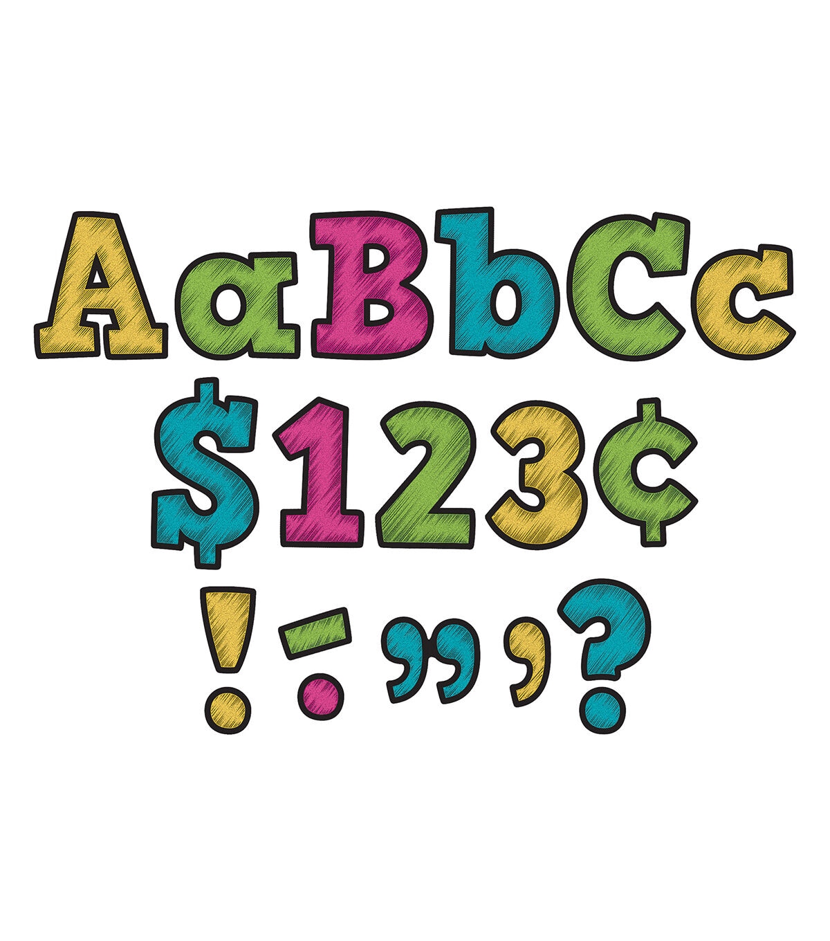 Use these Teacher Created Resources Chalkboard Brights Bold Block Letters to create bulletin boards, classroom centers, signs, banners and other displays. They punch out easily and are coated for durability. The colors and designs coordinate with popular decorative products from Teacher Created Resources. The pack includes an assortment of uppercase and lowercase letters, 20 numbers zero to nine, 40 punctuation marks and 14 Spanish accent marks.