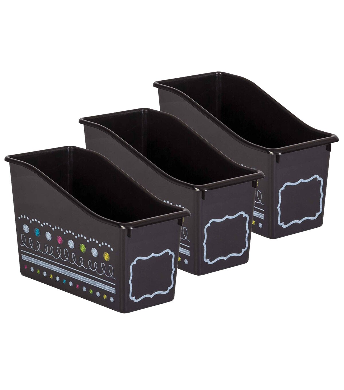 Add a little style to your organization with these plastic book bins. Store books, folders, binders, magazines, notebooks, and much more! Each book bin measures 5-1/2" L x 11-3/8" W x 7-1/2" H. Sold as a pack of 3 book bins.