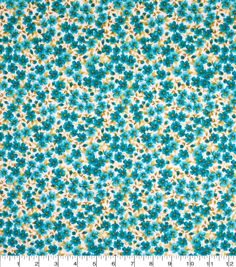 • Teal Mini Packed Floral Quilt Cotton Fabric by Keepsake Calico