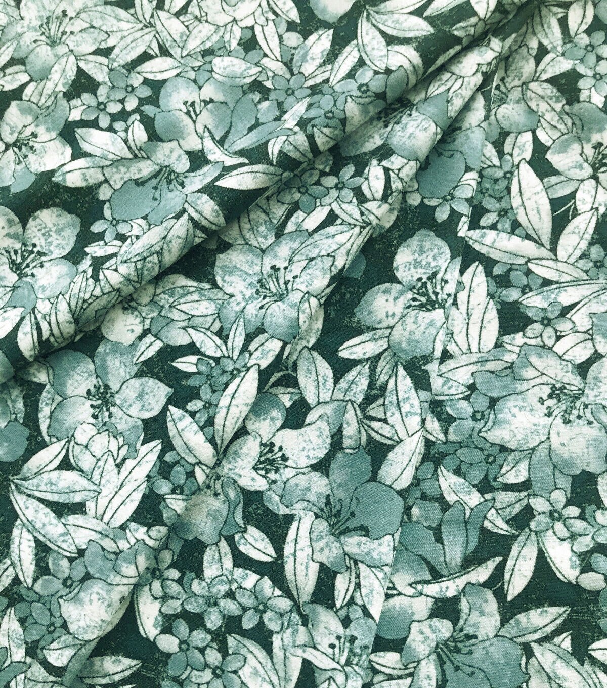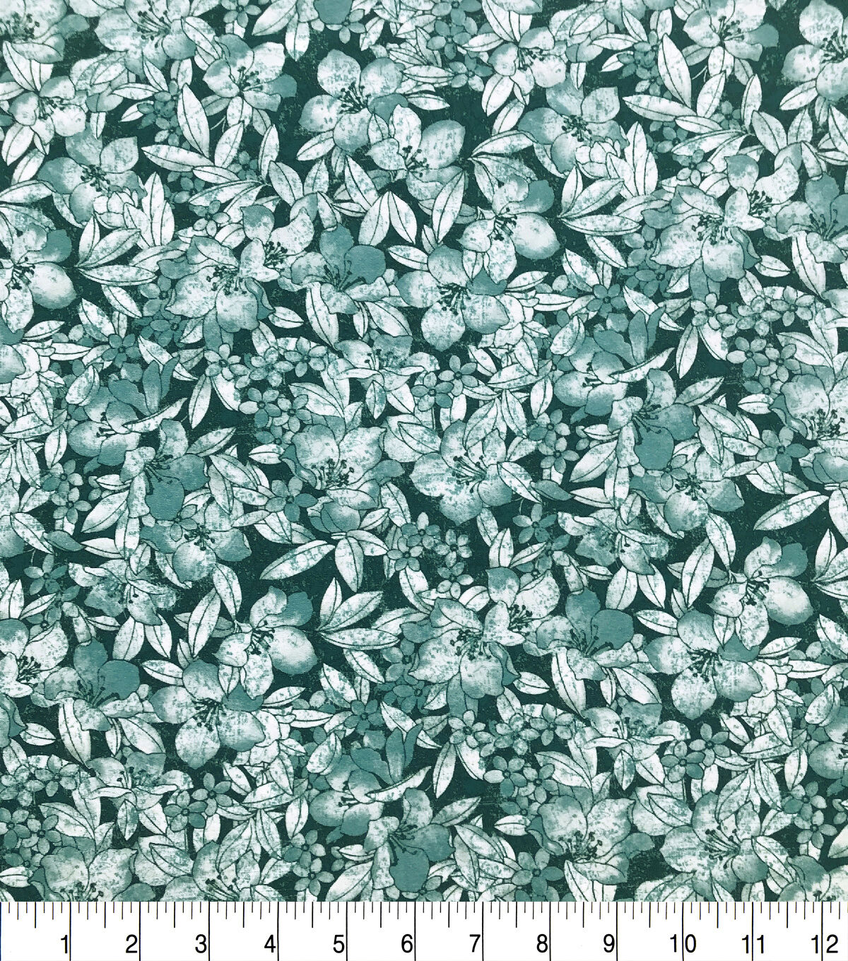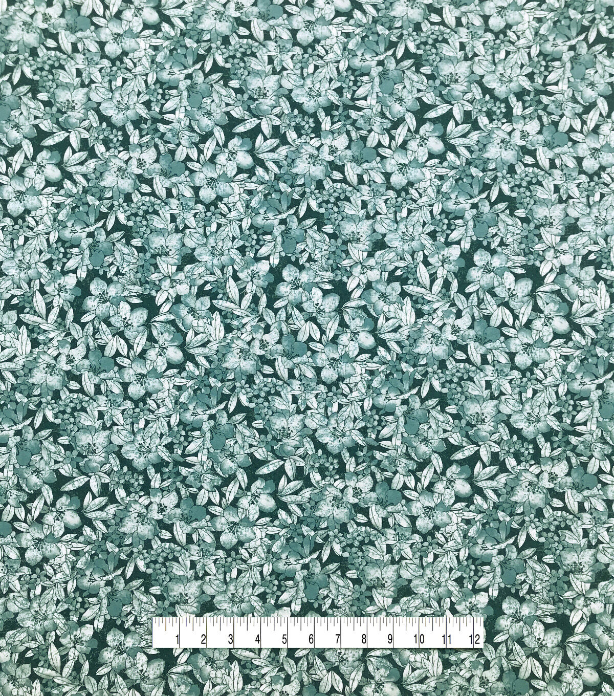 Teal White Sketched All Over Flow Knit Prints Fabric