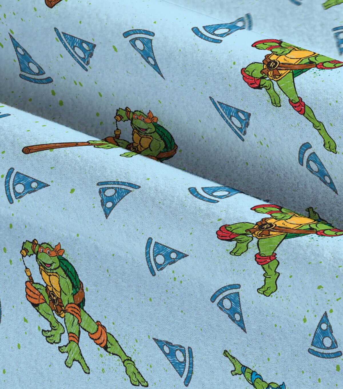• Teenage Mutant Ninja Turtles Pizza Paint Splatter Fleece Fabric