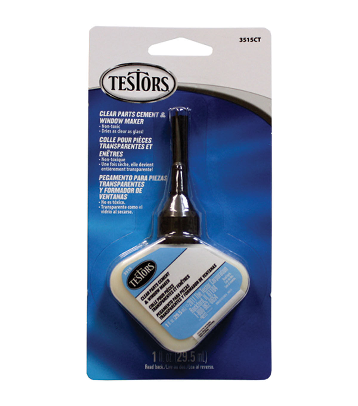 The Testors Clear Parts Cement & Window Maker is specially formulated for joining all polystyrene plastics. It dries as clear as glass and can even be used to make small windows for model cars and planes. This adhesive will not craze plastic, does not yellow, leaves no unsightly residue, and can easily be cleaned up with water. The pack contains one 1-fluid ounce bottle of non-toxic adhesive.
