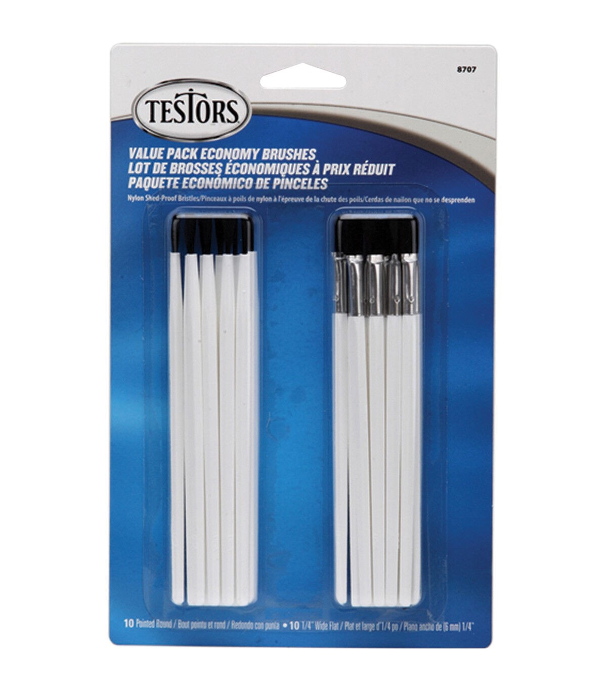 The Testors Economy Brushes are a must-have for group projects, school activities and much more. Ten of the brushes have rounded points, while the other 10 have 0.25-inch wide flat tips. All the paintbrushes are approximately 5 inches long. This pack contains 20 paintbrushes each with Nylon shed-proof bristles.