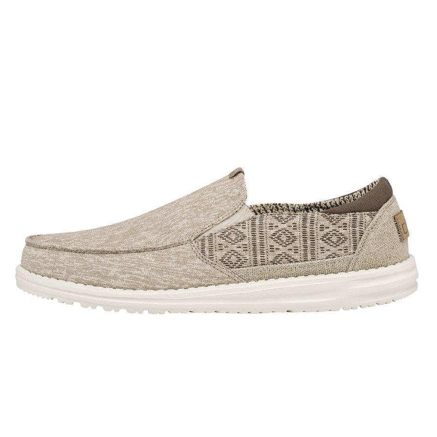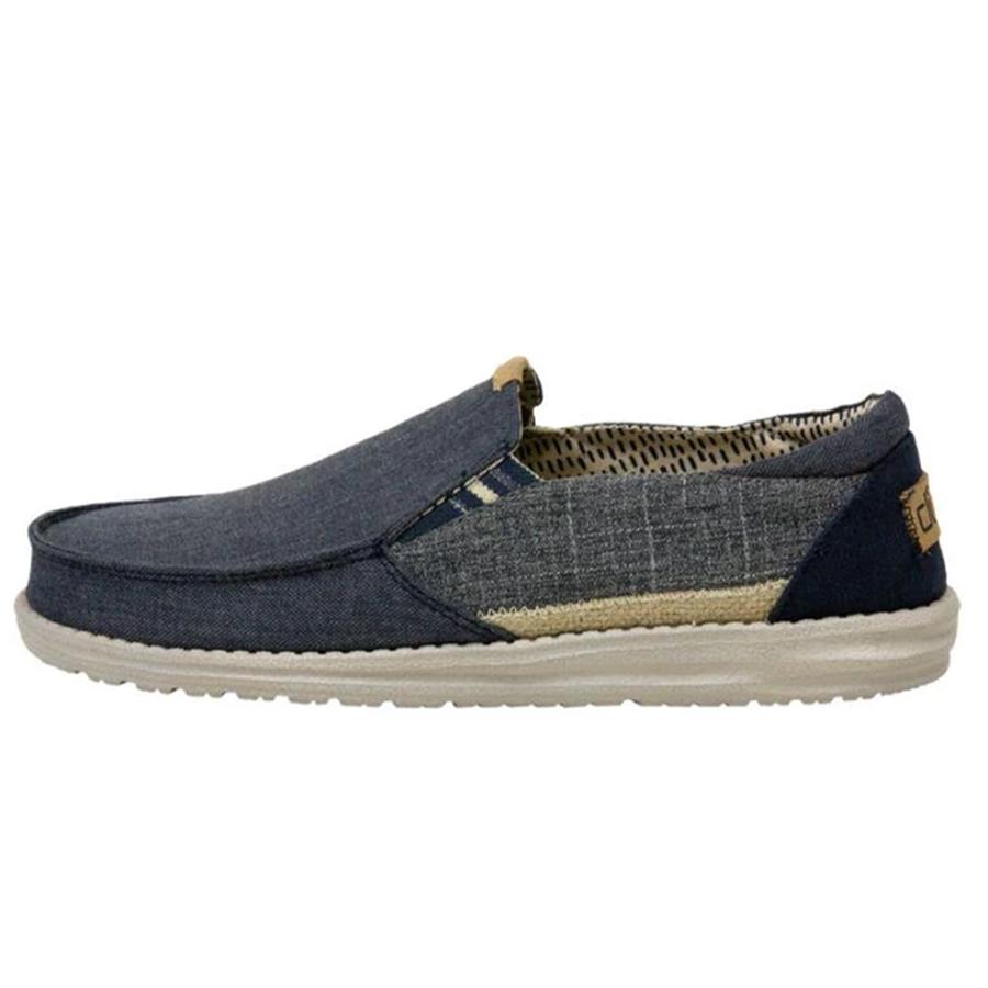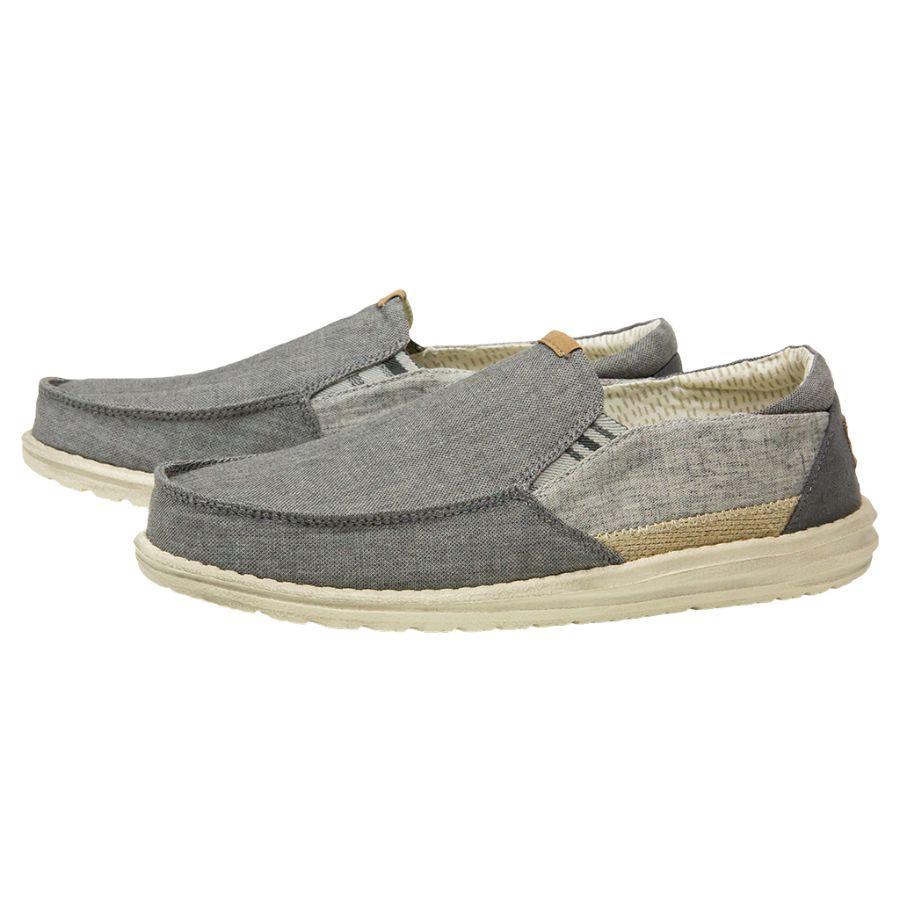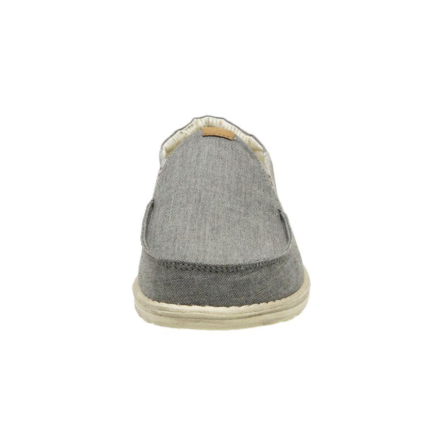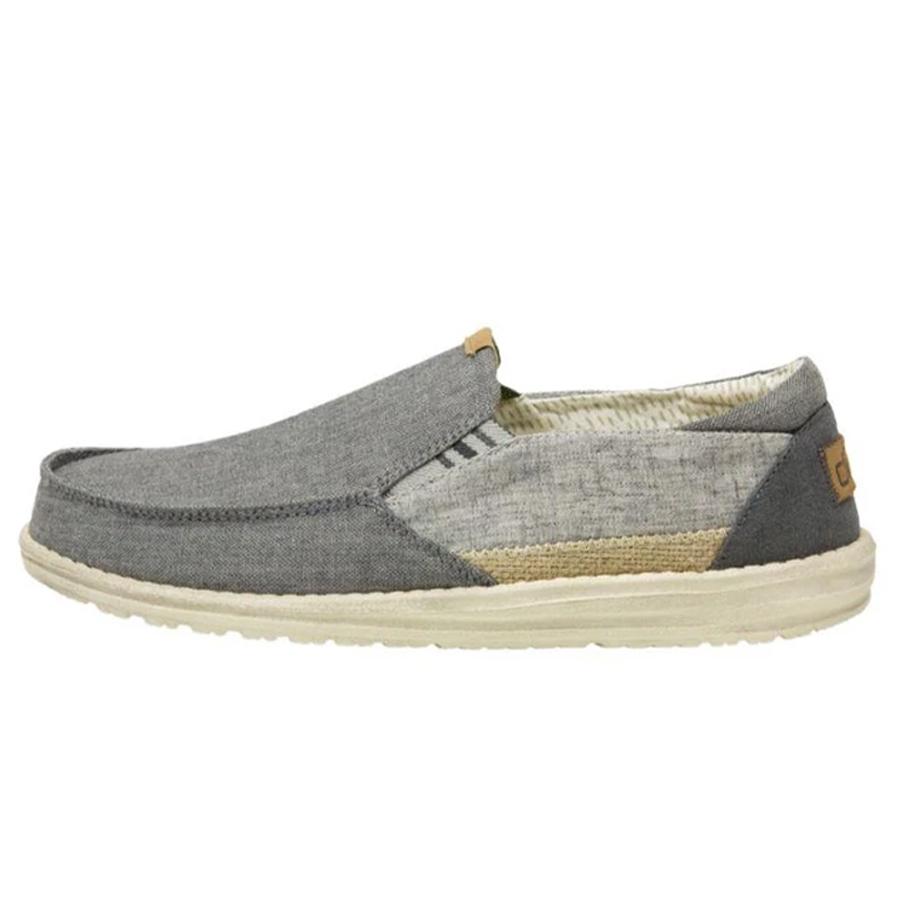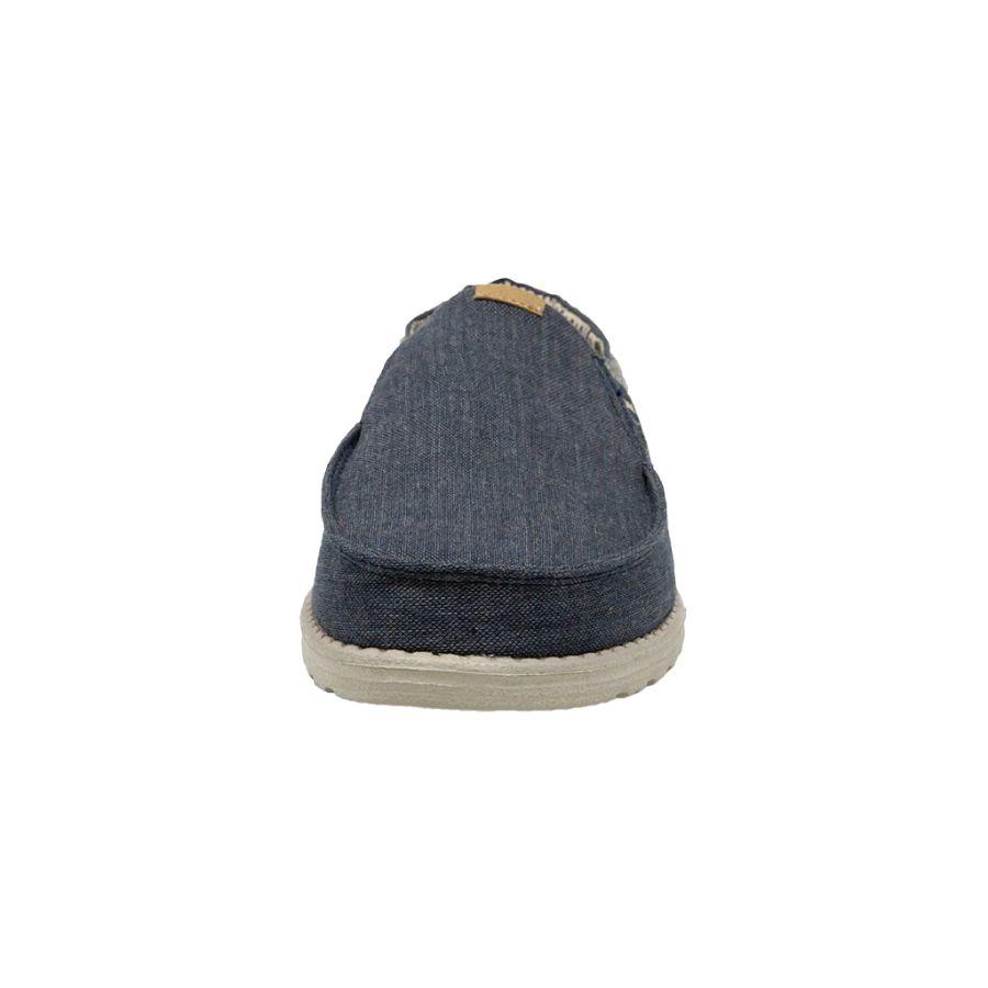 Put it on without breaking your stride. An elastic gore and padded heel give you quick access and security on the go. In breathable cotton chambray with a contrasting hemp patch and leather details.