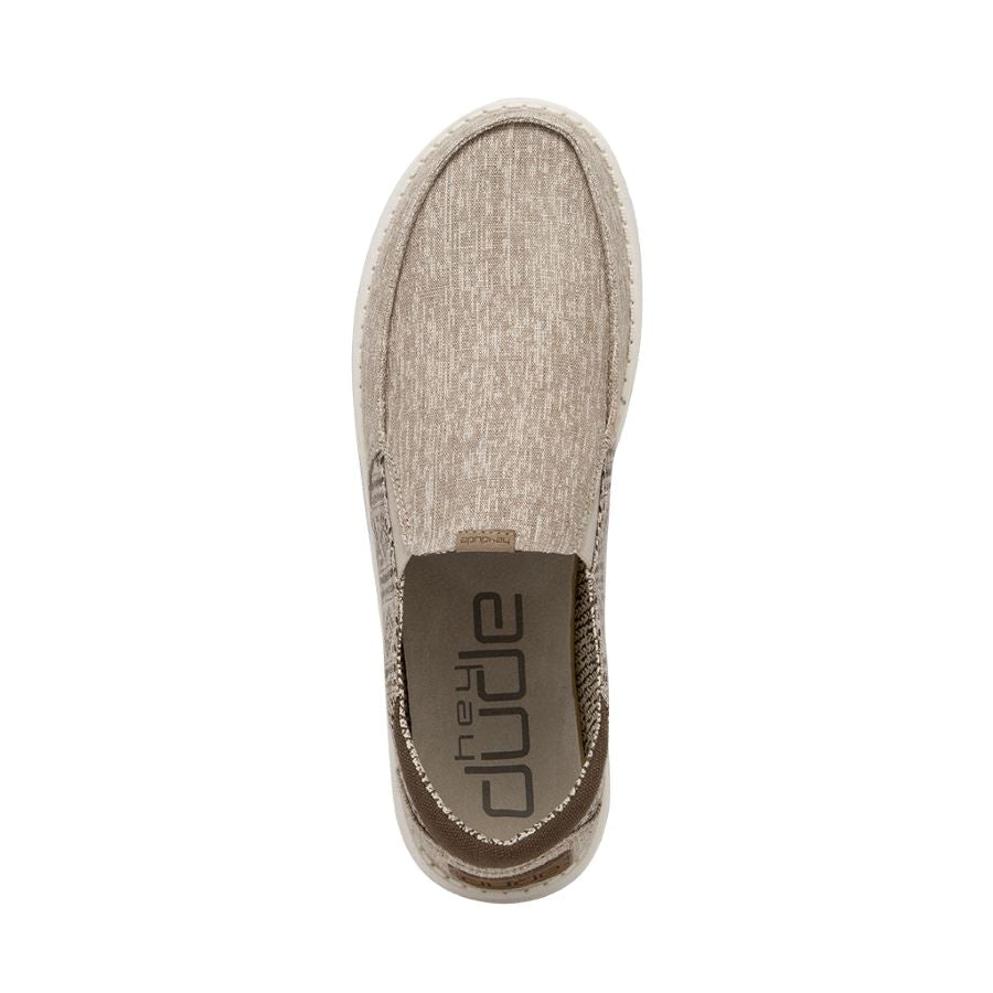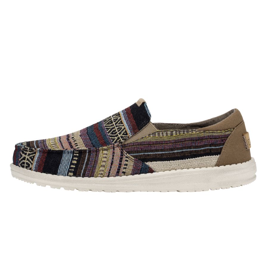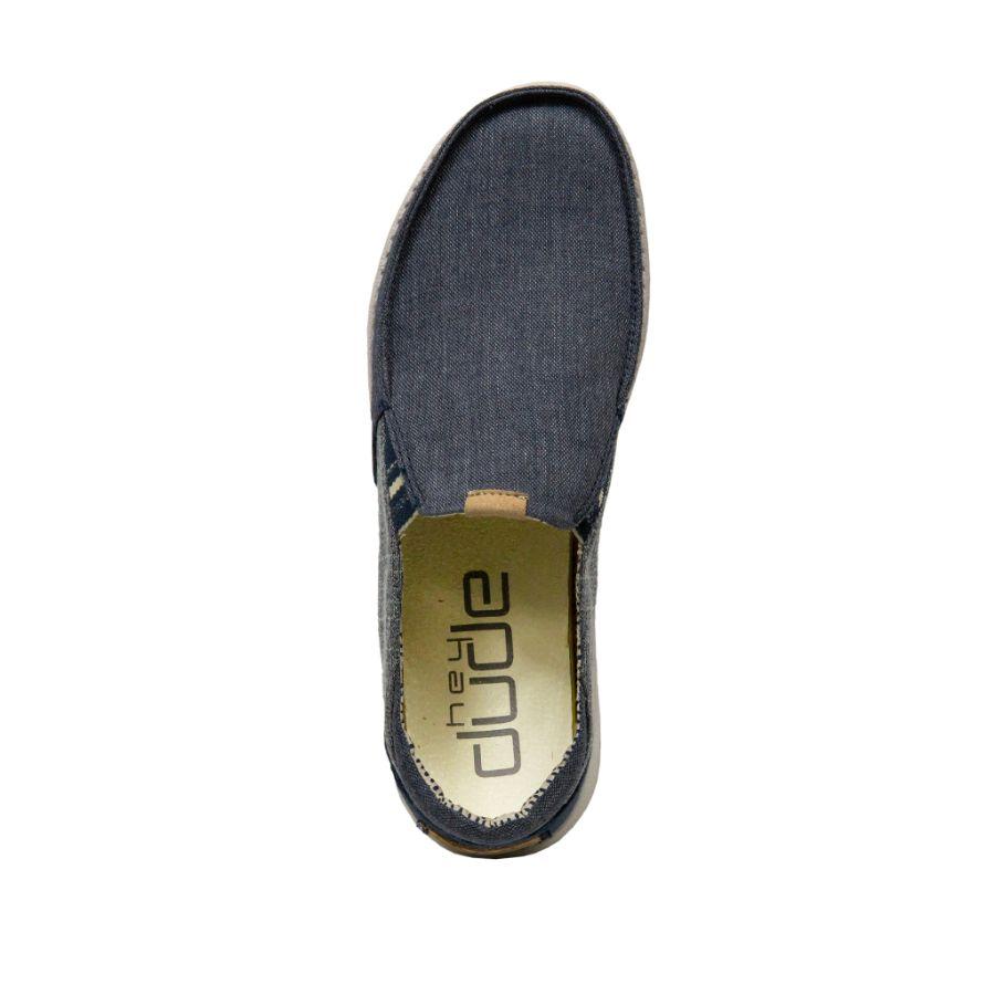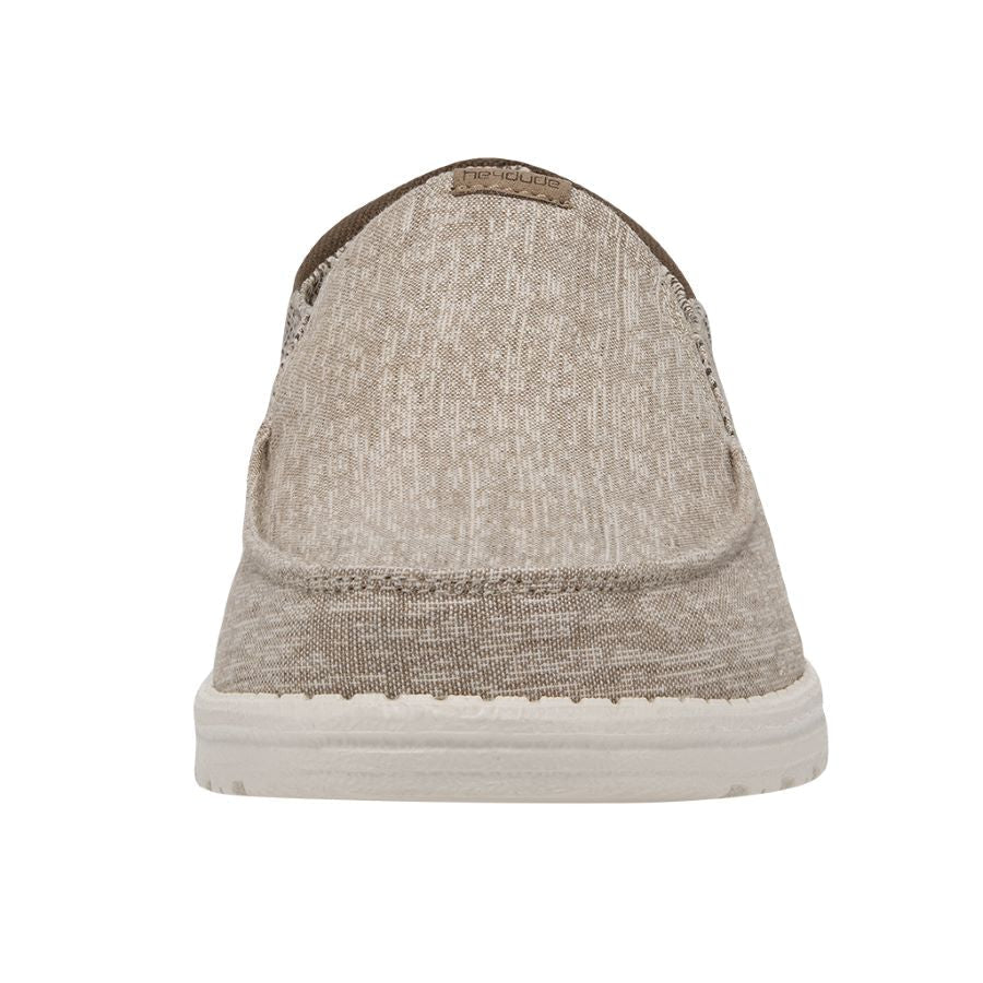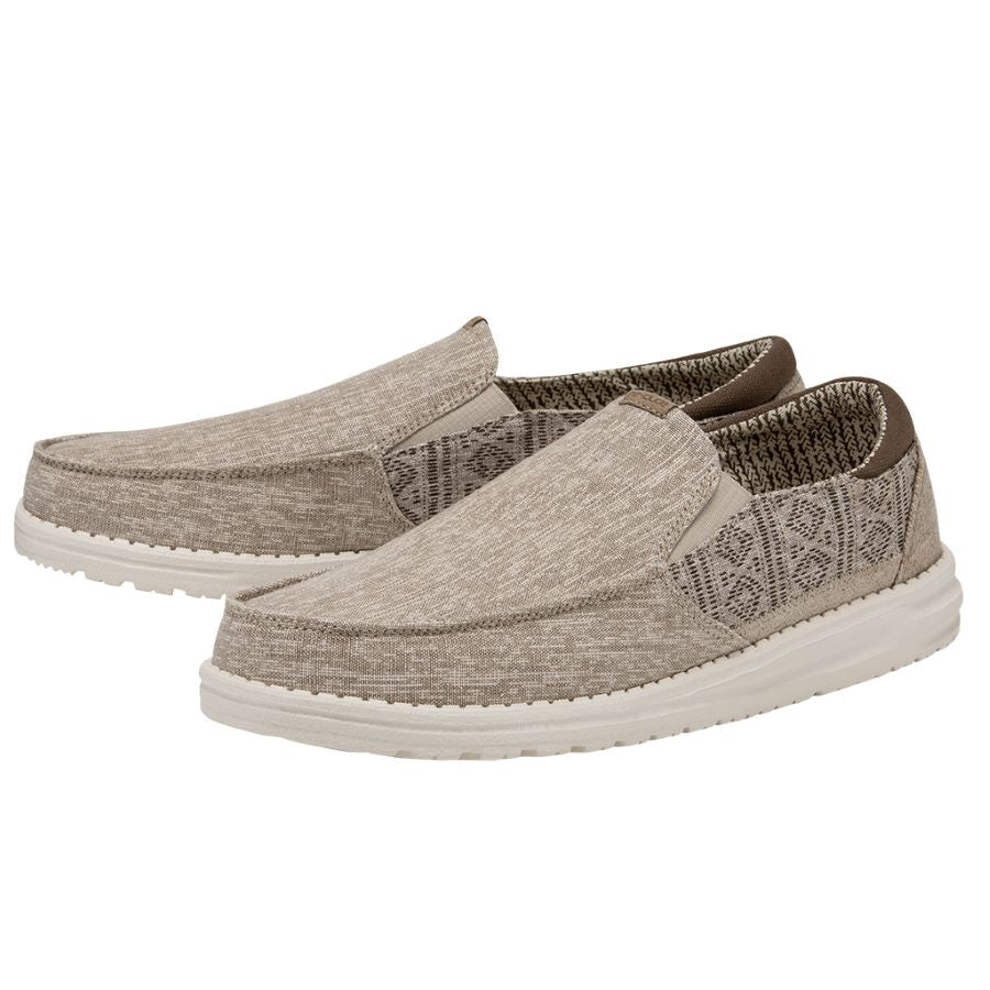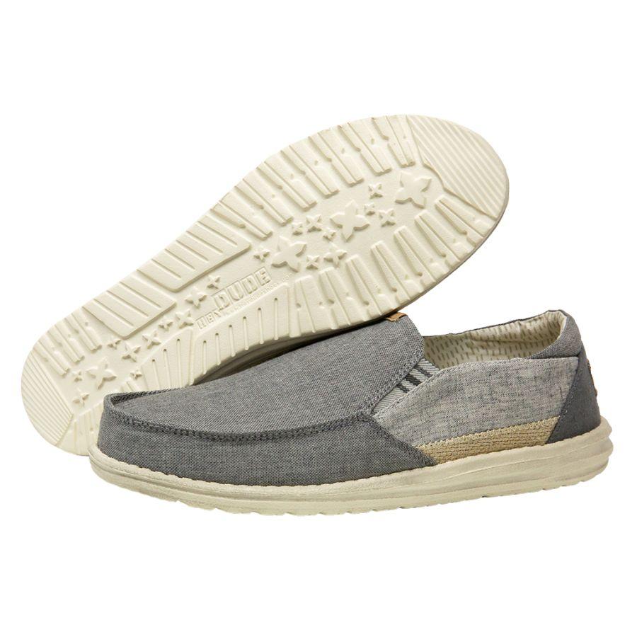 Put it on without breaking your stride. An elastic gore and padded heel give you quick access and security on the go. In breathable cotton chambray with a contrasting hemp patch and leather details.