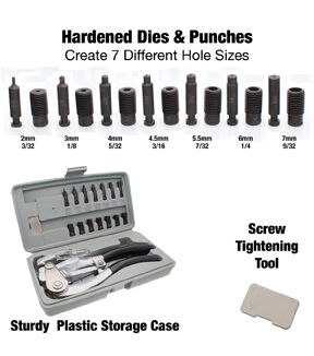 • SET INCLUDES PUNCHER, 7 PUNCHES AND 7 DIES