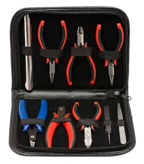 • SET HAS A ROUND NOSE, CHAIN NOSE, SIDE CUTTER, NYLON FLAT JAW, CUTTER, CRIMPERS, 2 TWEEZERS AND A BEAD SCOOP