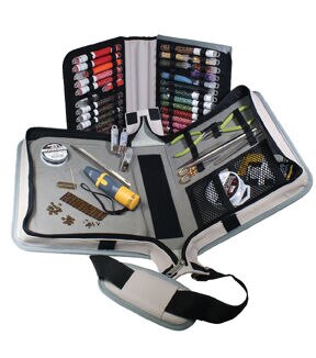• ZIPPERED TRAVEL CASE THAT LAYS FLAT TO BE USED AS A WORK SURFACE