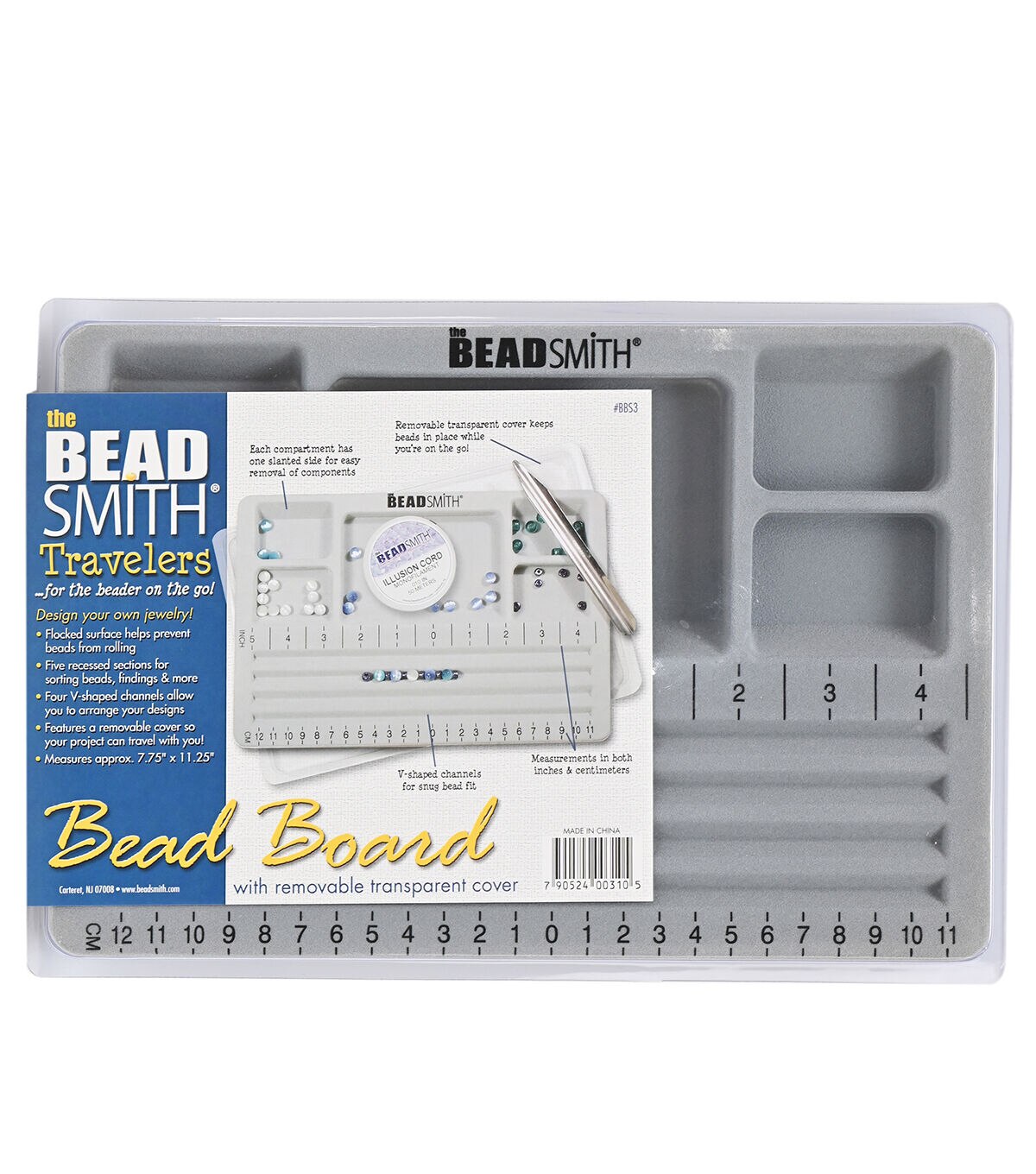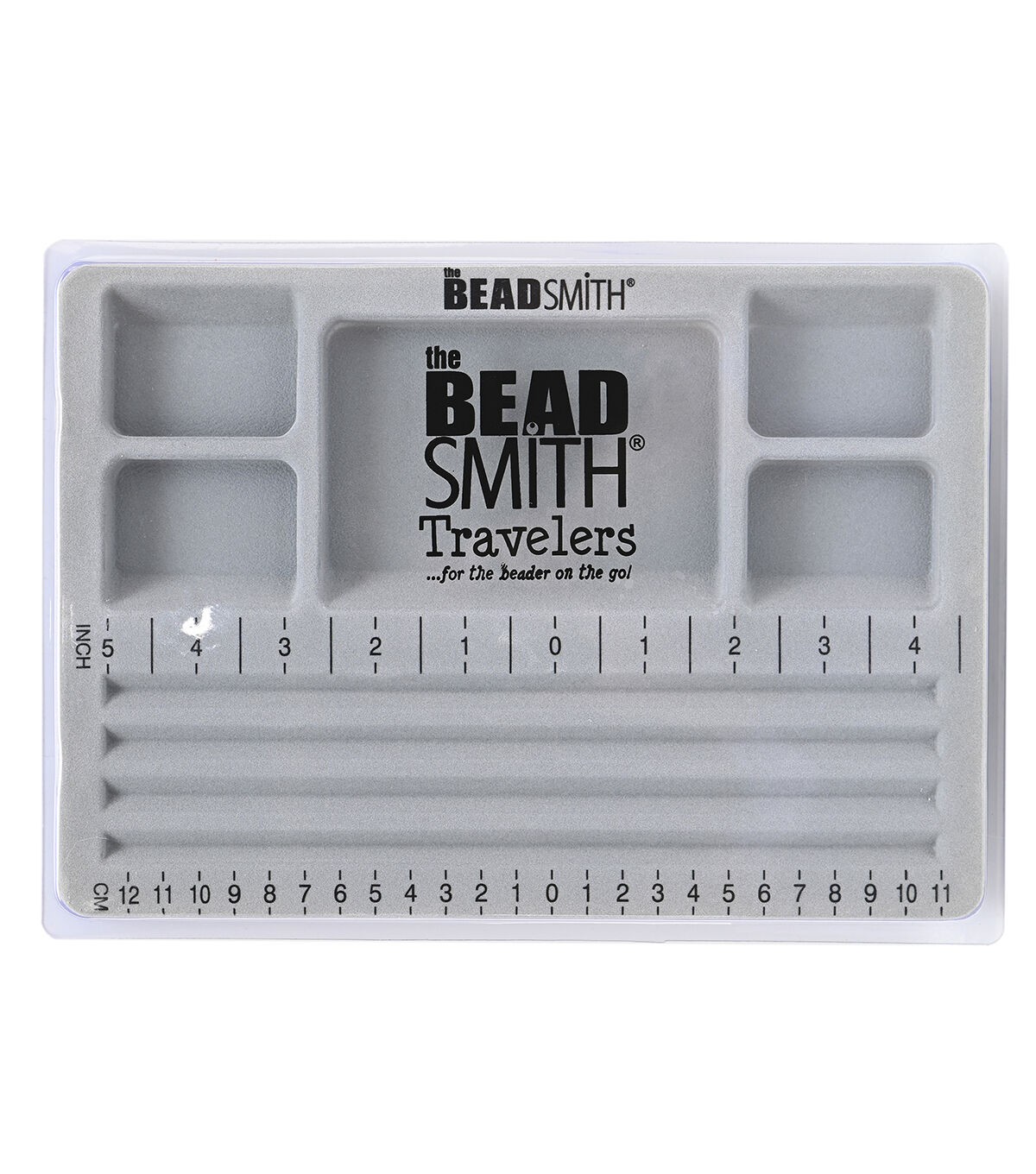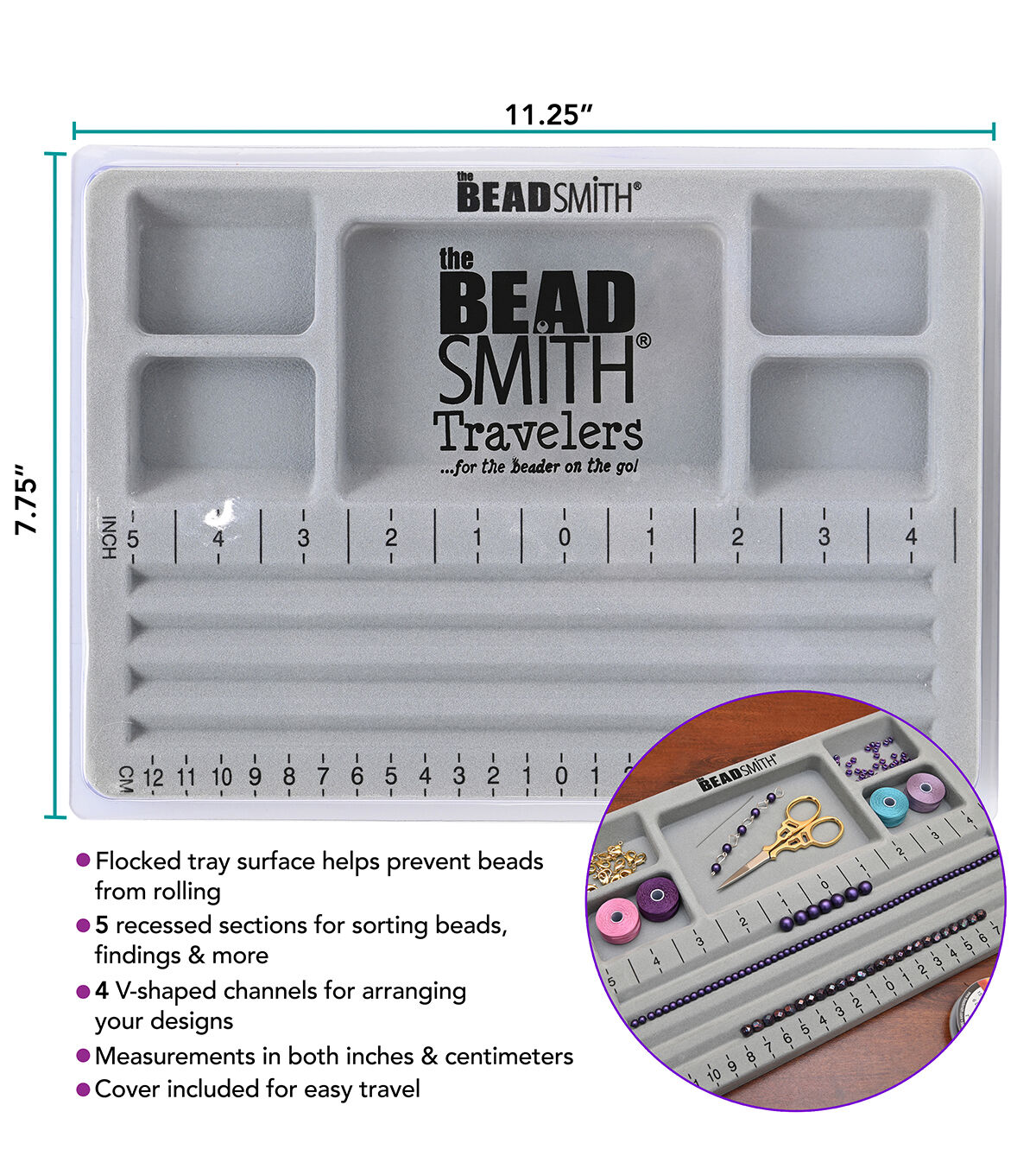 Mini Bead Board, Grey Flocked, 4 Straight Channels, 5 Recessed Compartments, Design Boards for Creating Bracelets, Necklaces and Other Jewelry
