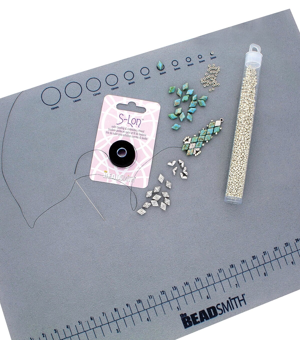 - Helps when pre-planning designs. Lay out stones, beads, crystal and string beforehand.